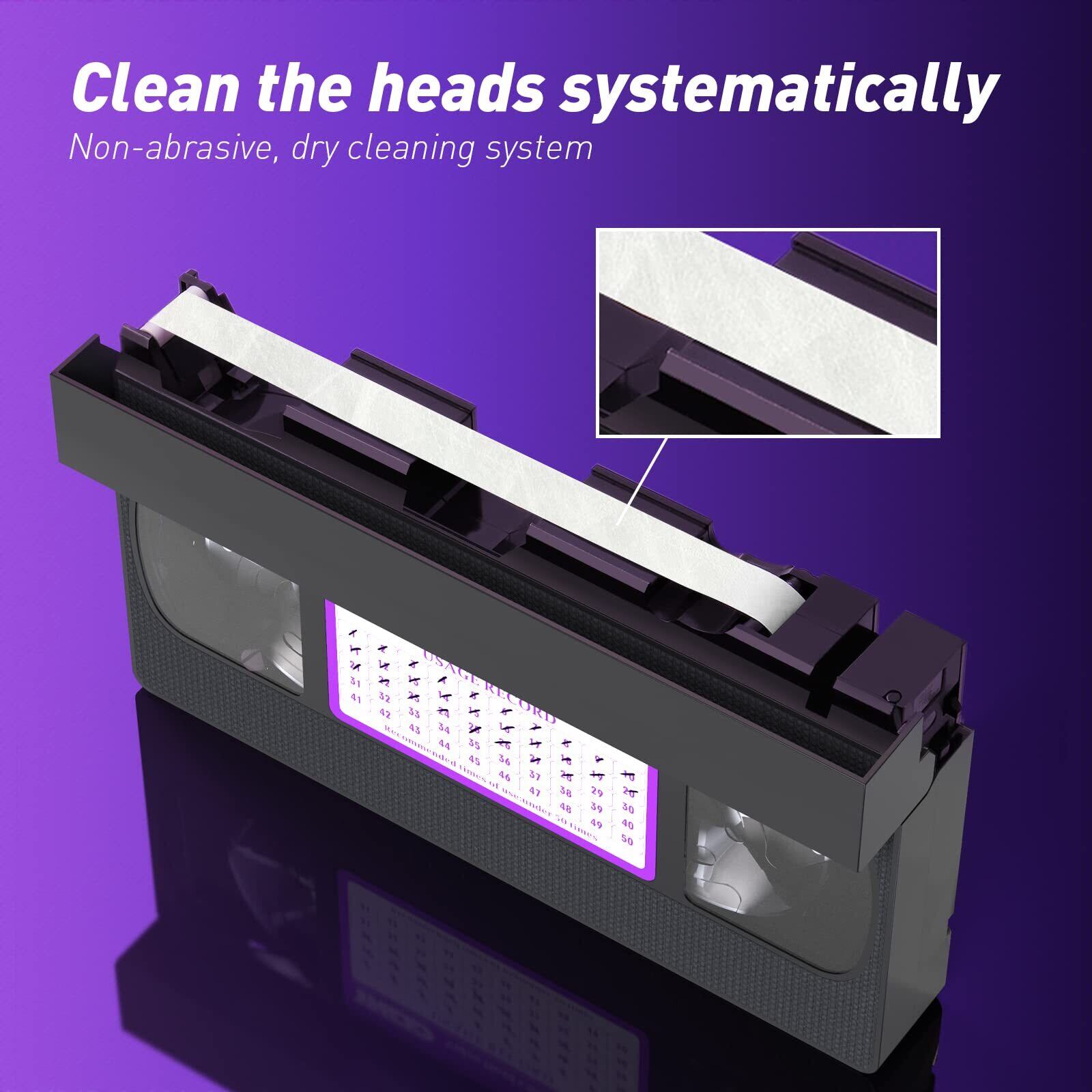 VCR ヘッドクリーナーテープ VHS/VCR ビデオプレーヤー用 ドライタイプ 再利用可能 50回