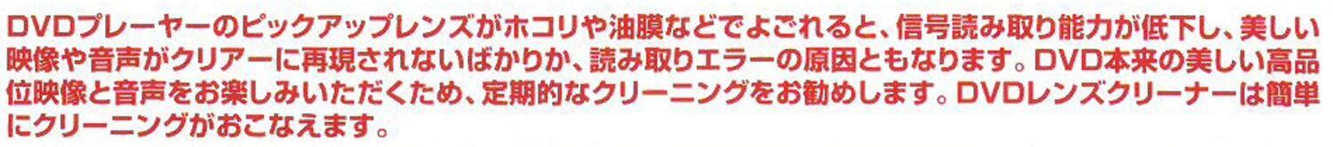 DVDピックアップレンズに付いたゴミやホコリを取り除く乾式クリーナーです。ドルビーデジタル5.1chサラウンドチェック機能収録。