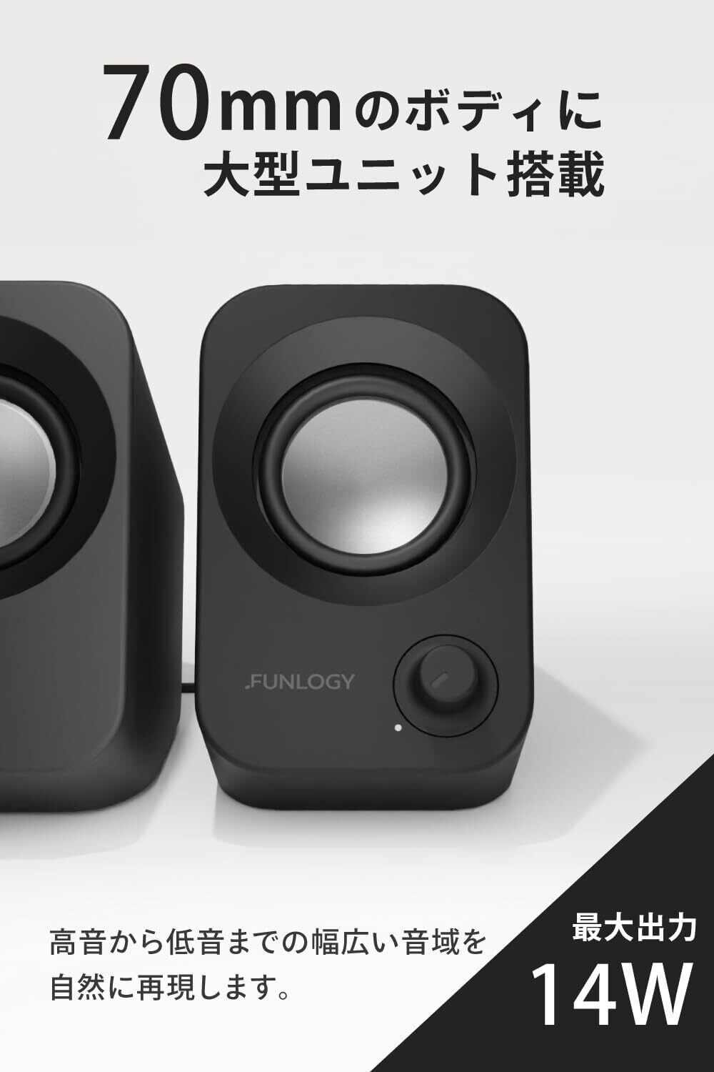 FUNLOGY Speaker(スピーカー/PCスピーカー)【VGP2024受賞】総合14W / ステレオスピーカー/USB給電/重低音/AUX / 3.5mmピン入力【日本ブランド】 (ブラック)