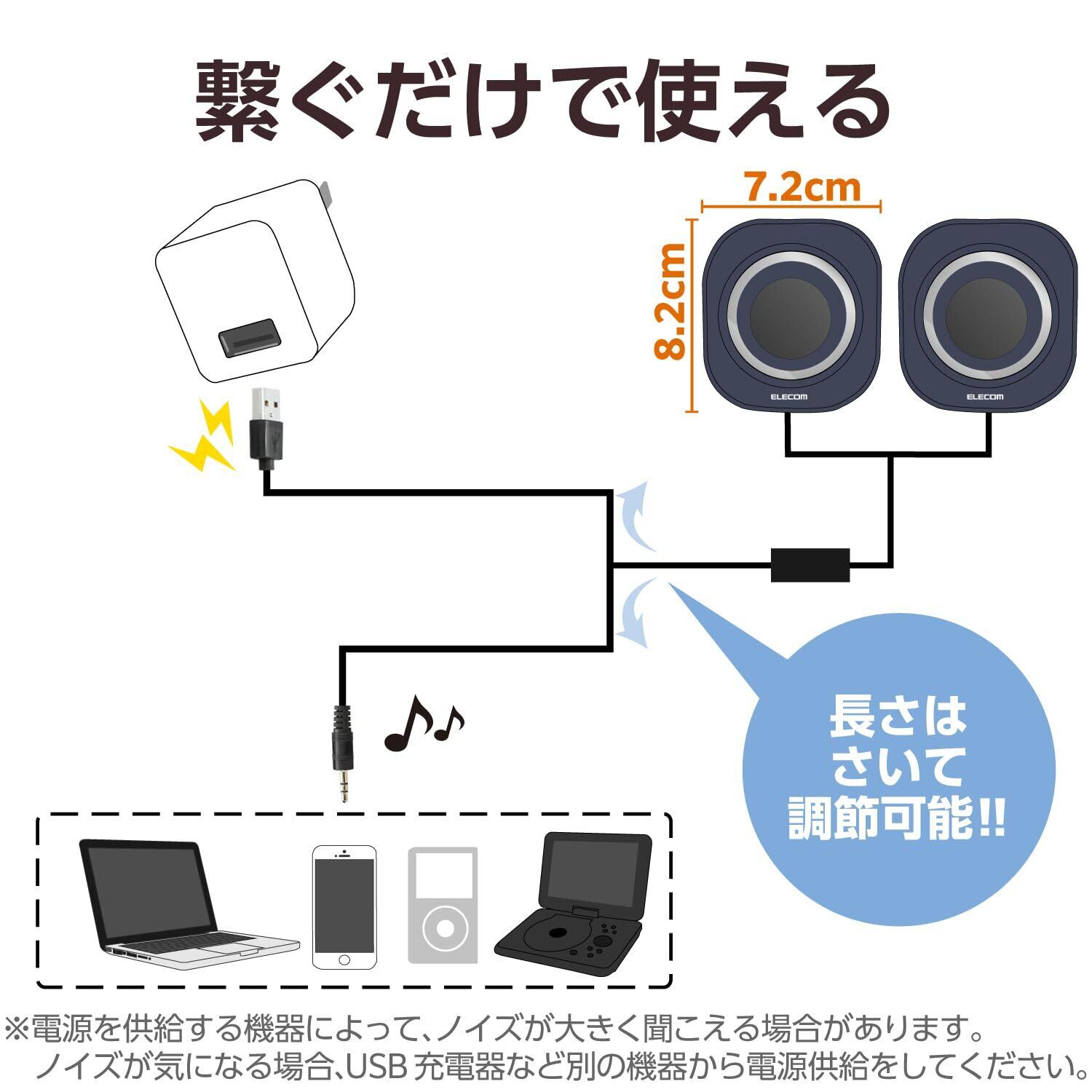エレコム PC スピーカー 3.5㎜接続 コンパクト 軽量 簡単接続 【PC・スマホ・音楽プレイヤーなどに】 ブラック MS-P08UECBK