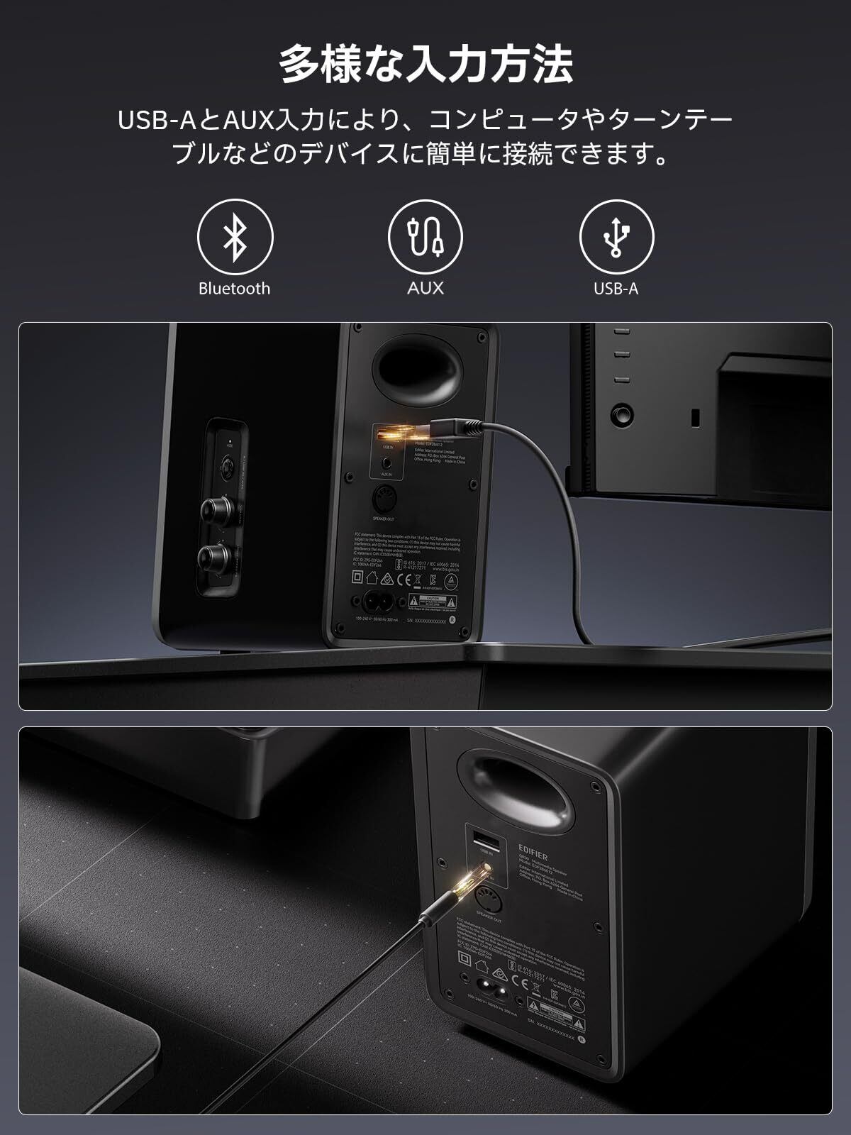 Edifier QR30 スピーカー Bluetooth5.4 PCスピーカー 小型 30W マルチポイント接続 63Hz-20kHz RGBライト 3WAY接続(Bluetooth/AUX/USB-A) 専用アプリ ブラック