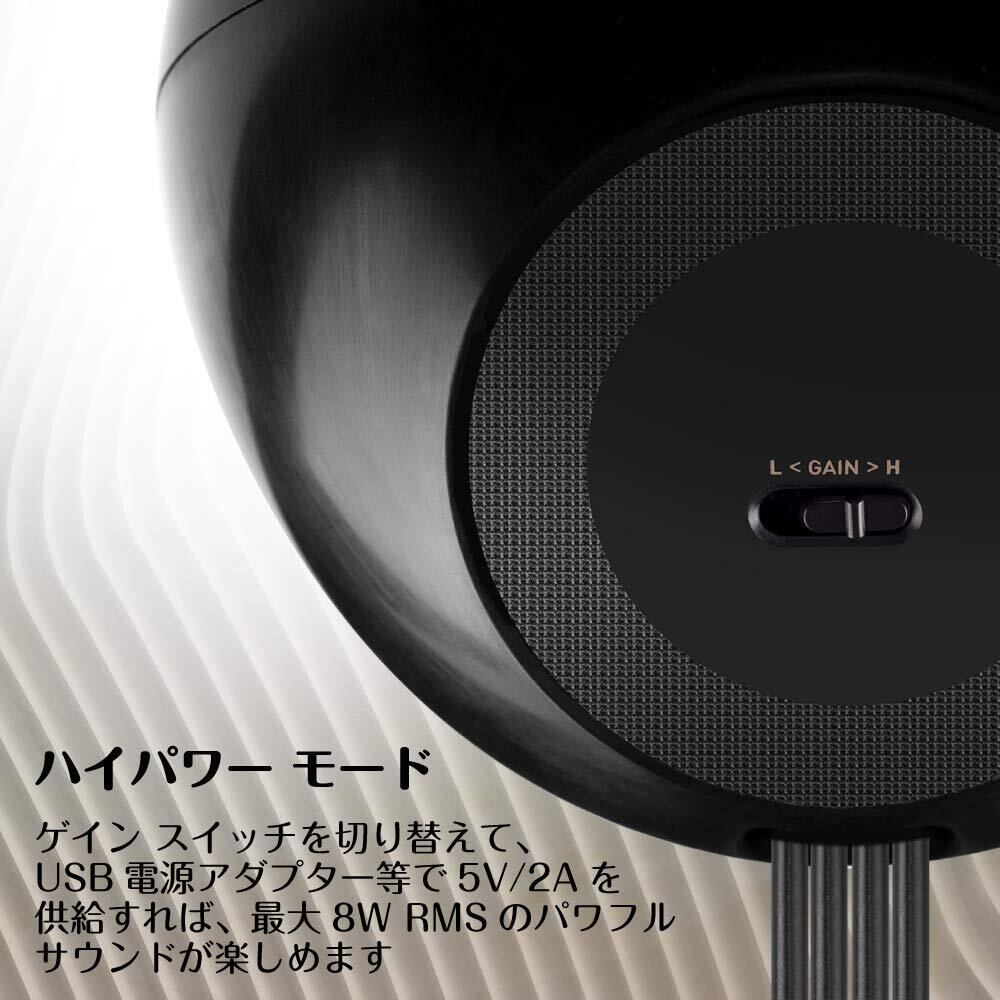 【ご案内】さらに低音や音量が欲しい場合は「5V/2A」対応のUSB電源アダプタを使用すれば総合8W RMSまでパワーが向上、また再生音にノイズが聞こえる場合は外部からノイズが来ている場合があります。USB端子を変える / ラインケーブルを他の機器につないでみる / 各ケーブルの接続が緩くないか等でノイズが消えるかご確認ください