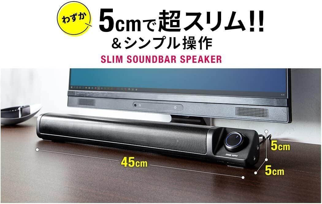サンワダイレクト PCスピーカー サウンドバー 音量・電源ダイヤル式 USB給電 3.5mm接続 6W 高さ5cm 薄型 1個 400-SP099