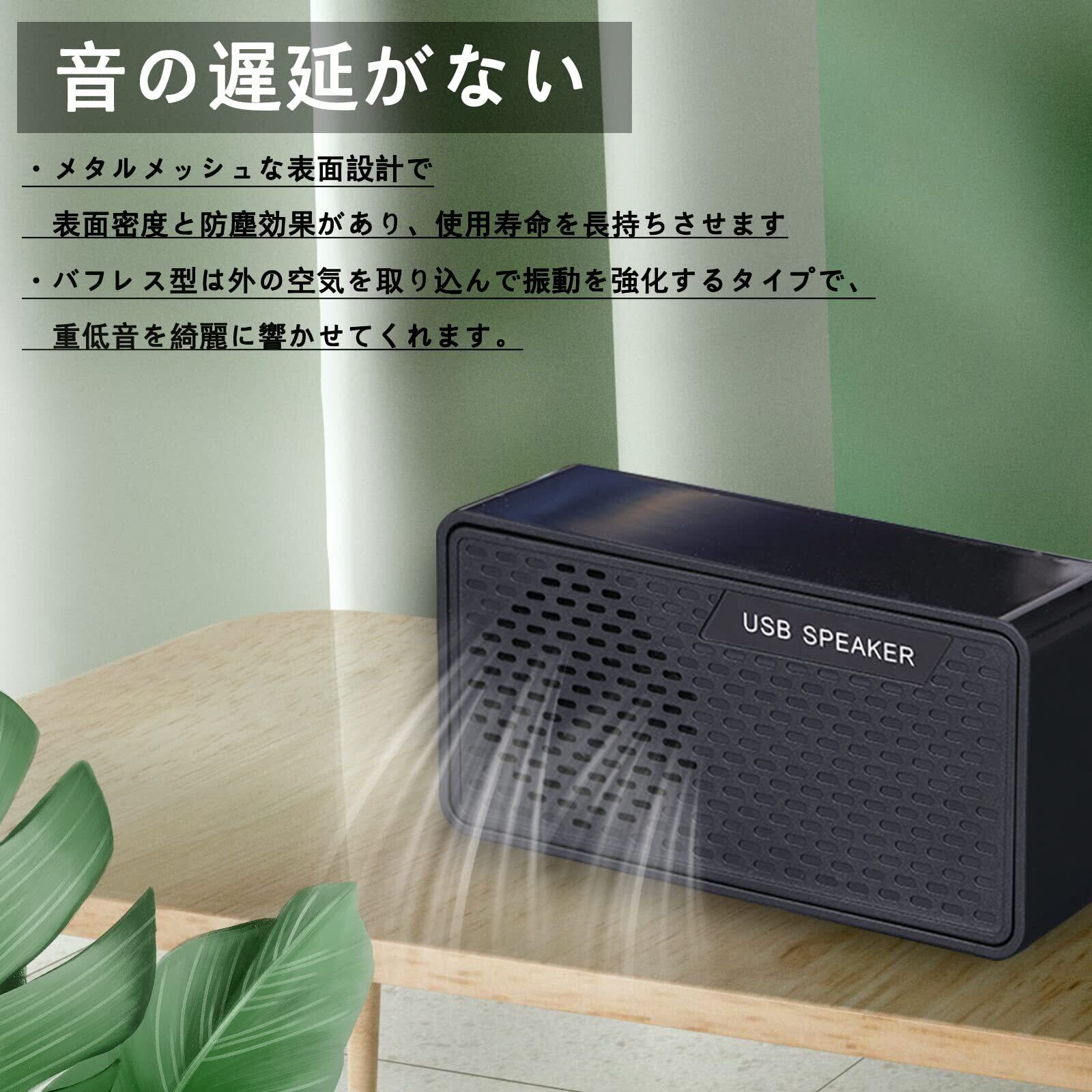 2.「高音質スピーカー」このpcスピーカーは実用最大出力3Wです。(一つ低音振膜、一つスピーカー)音声信号をデジタルで伝送するので、音質劣化の原因となるノイズの混入を防ぎます。入力した音源を独自にデジタル処理しているので、明瞭感が高いです。小さな音量でも自然に聞こえるように音響バランスを自動で調整してくれます。中・高音域の再生力も優れており、音潰れが少ないと言えます。スピーカー設計を採用することで、リアルな音を演出し、家の中にいても、臨場感溢れる音が体験できます。バフレス型は外の空気を取り込んで振動を強化するタイプで、重低音を綺麗に響かせてくれます。