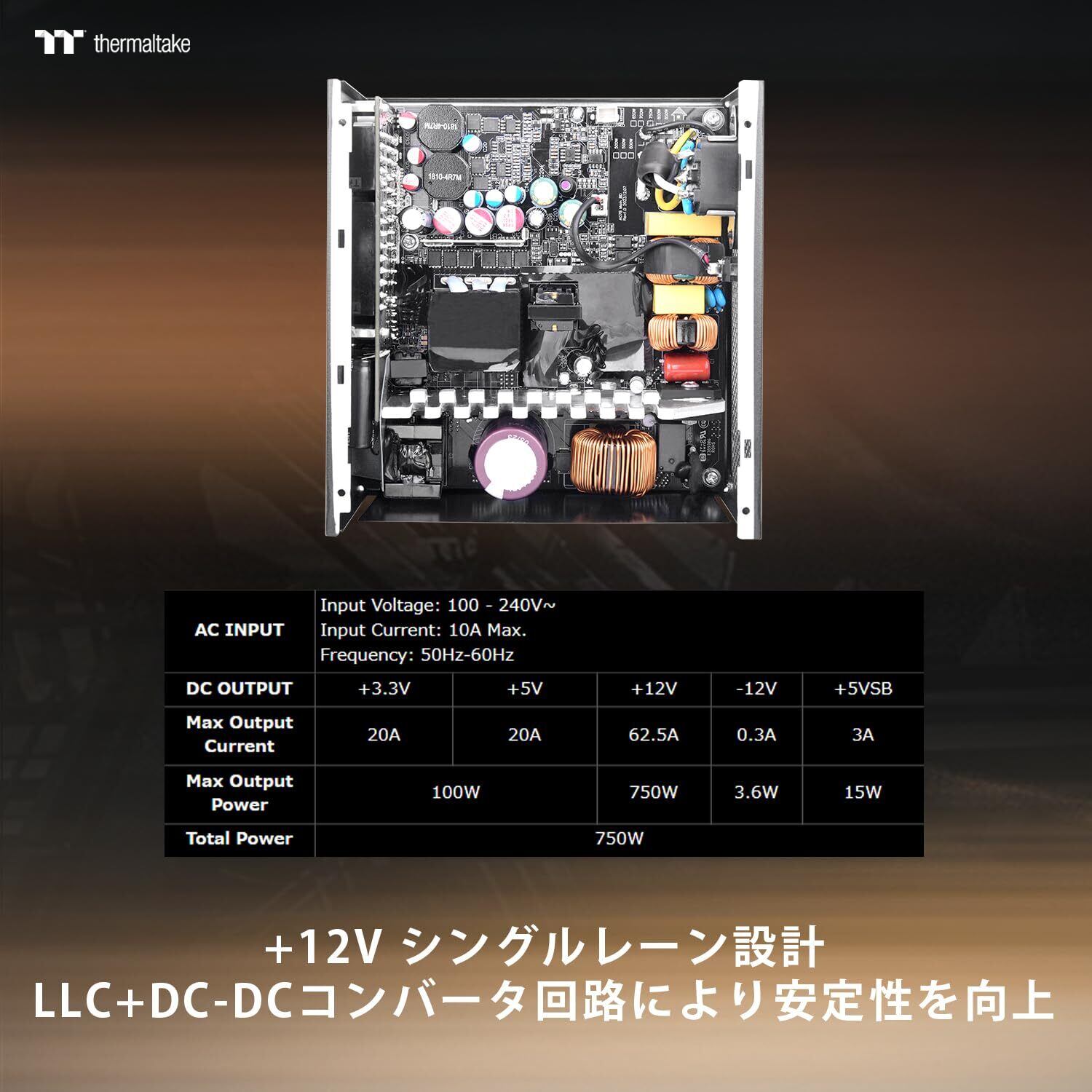 Thermaltake TOUGHPOWER GT 750W ATX 3.1/PCI Express 5.1対応 80PLUS GOLD PC電源ユニット PS-TPT-0750FNFAGJ-3 PS1495