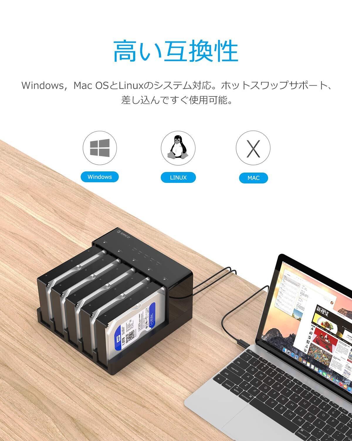 ORICO ハードディスクケース 2.5 / 3.5インチ HDD/SSD対応 16TB*5ベイ USB3.0接続 HDDコピー機能付き ドライブケース 工具不要 高放熱 電源アダプター付 ブラック 6558US3