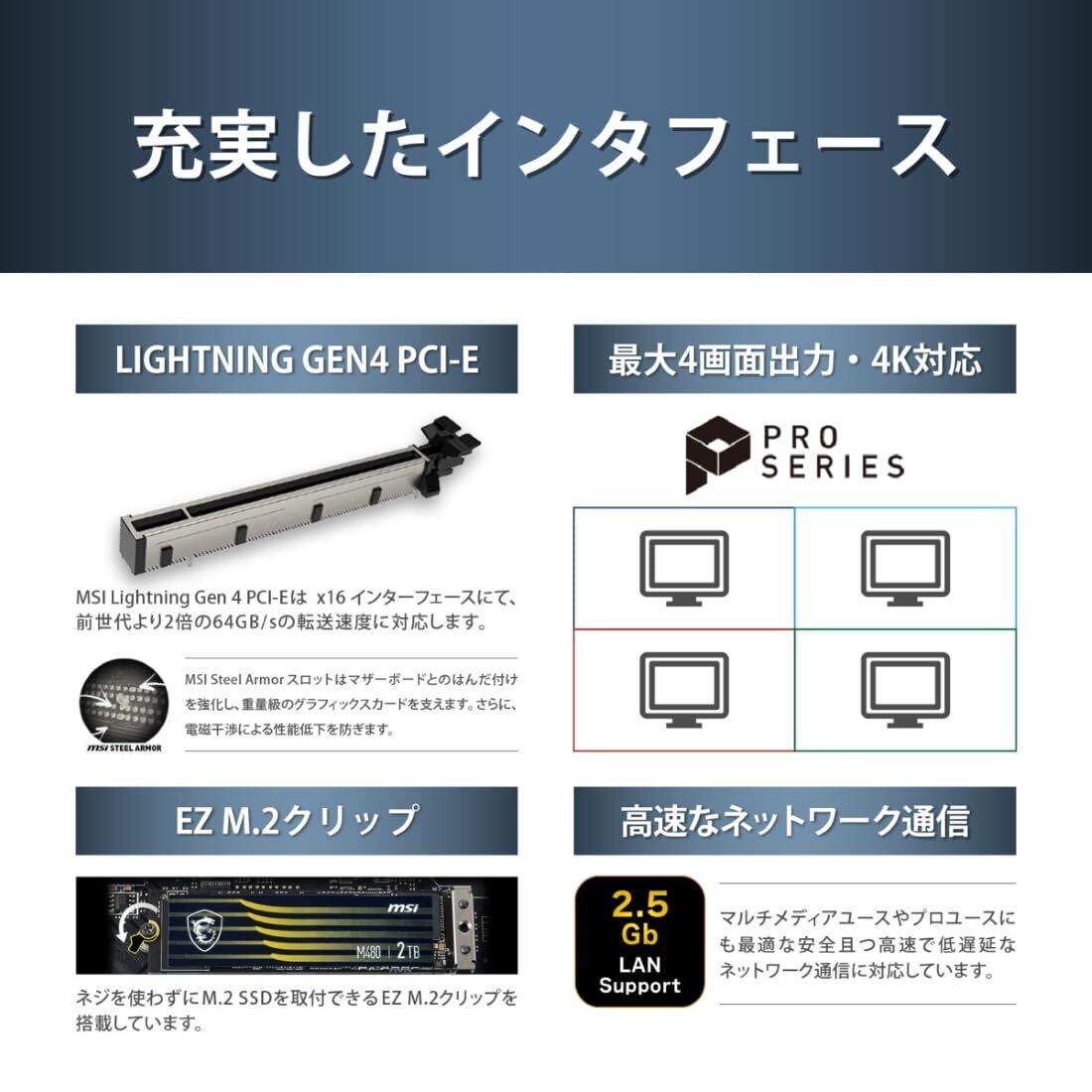 PCIe Gen4x4対応のM.2ポートを2基搭載、ストレージへの高速アクセスが可能です。EZ M.2 clipにより、脱着も簡単に行うことができます。