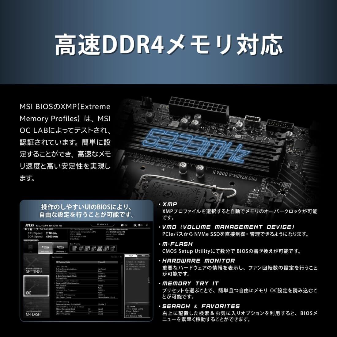 MSIマザーボード PRO B760M-A DDR4 II 第14/13/12世代Intel CPU(LGA1700) 【白い自作PCで快適ゲーム】 [B760 搭載] MB6318