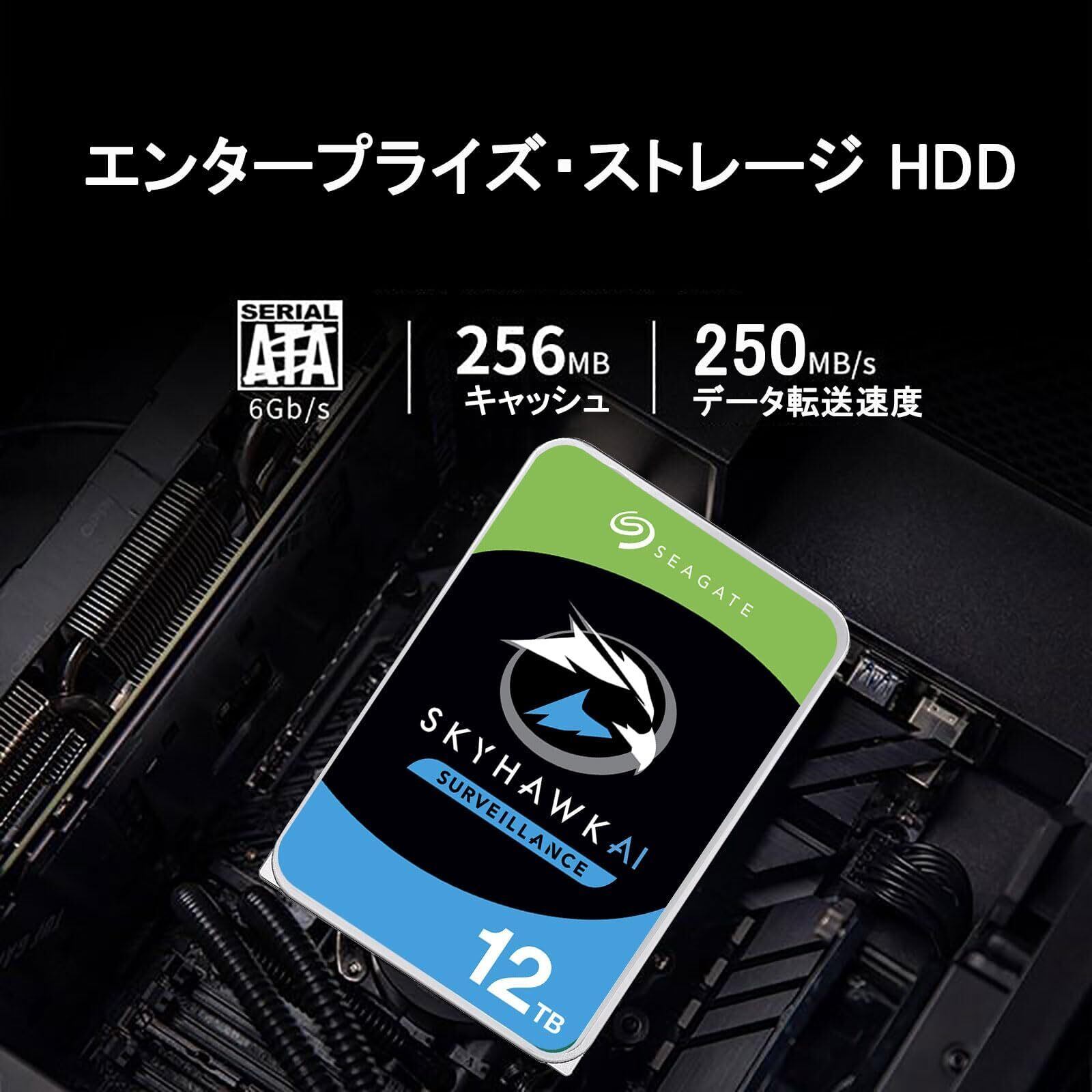 【整備済み品】 シーゲイト SkyHawk AI 12TB hdd内蔵,3.5インチ 監視用ハードディスク 2年,7200rpm SATA 6Gb/s 256MB 24時間稼動 NAS ネットワーク 監視カメラ ビデオレコーダ