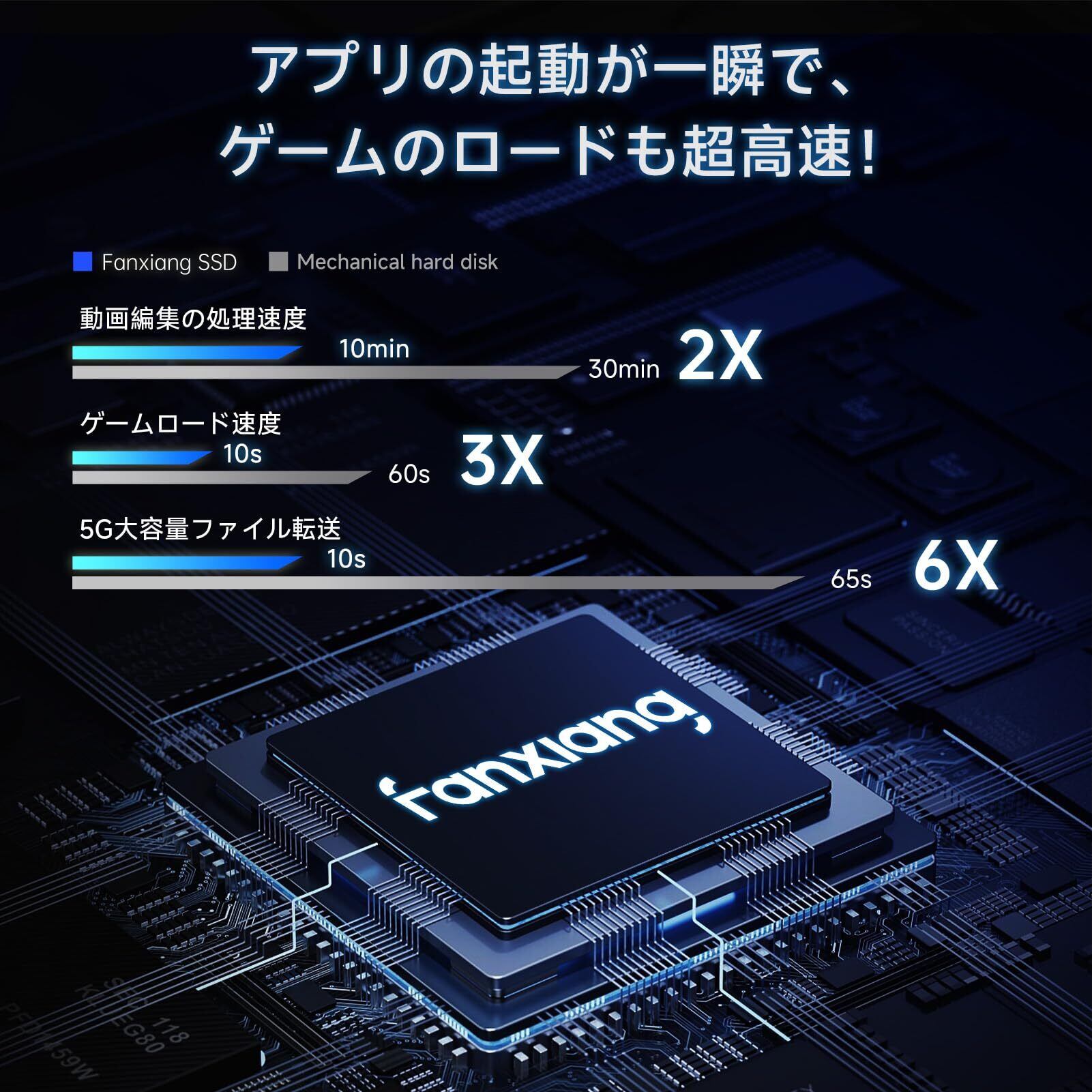 「コンピューターを高速化に・効率性向上」fanxiang SSD 256GBはSATA III 6Gb/s高速インターフェースを搭載しており、ssd 256の最大読み取り速度は550MB/s、最大書き込み速度は500MB/sです。のssd 256gb sataはSLCキャッシュ技術のおかげで、パソコンやシステムを急速起動でき、従来のHDDにより約3倍の速度アップに達し、SSD内のファイルなどもより速く読み取れます。長い待ち時間が心配なく、時間を節約して効率が大幅に向上にさせます!