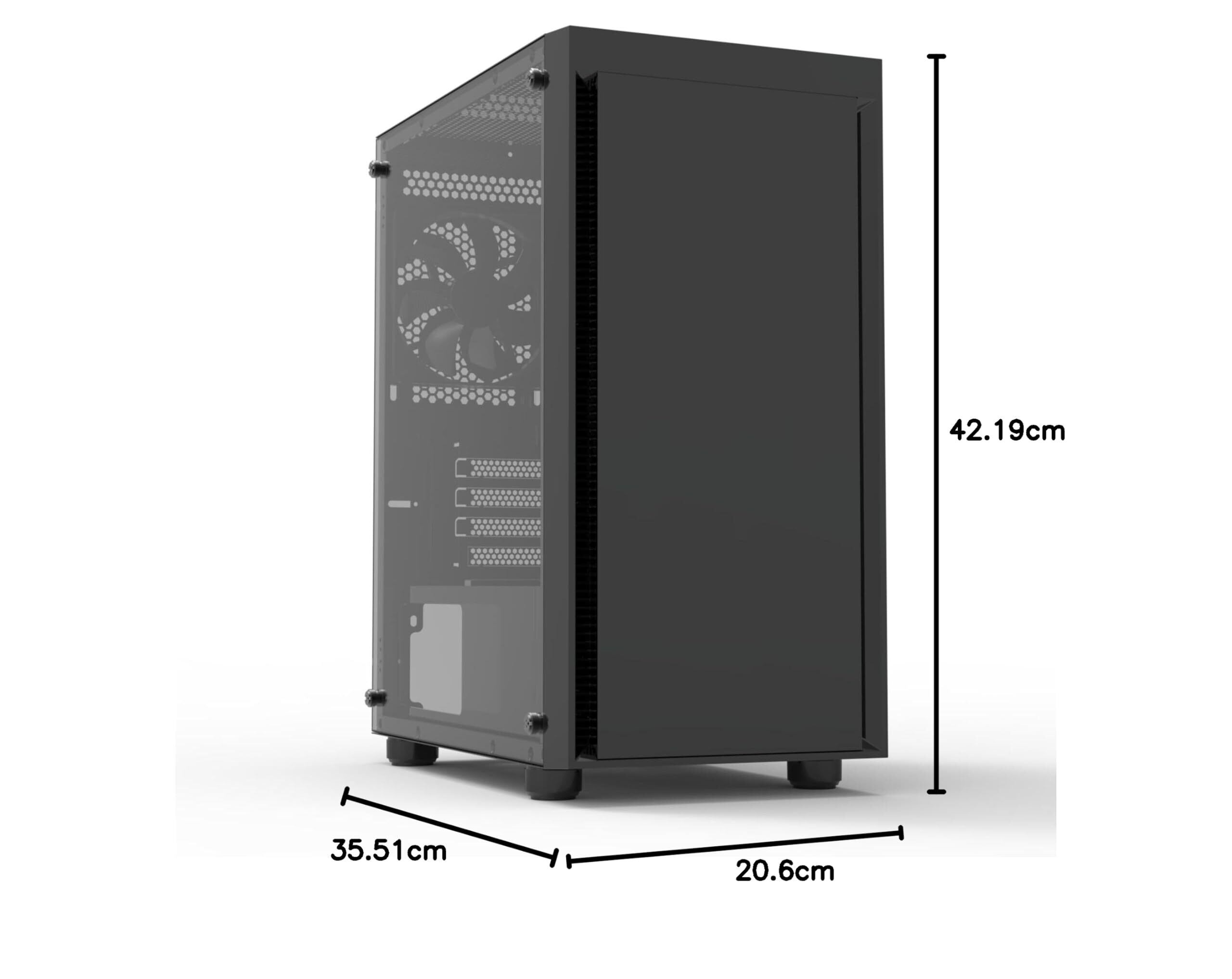 フロントとリアに120mmファンを各1基搭載、追加購入なしでケース内のエアフローに必要なパーツが備わっています。