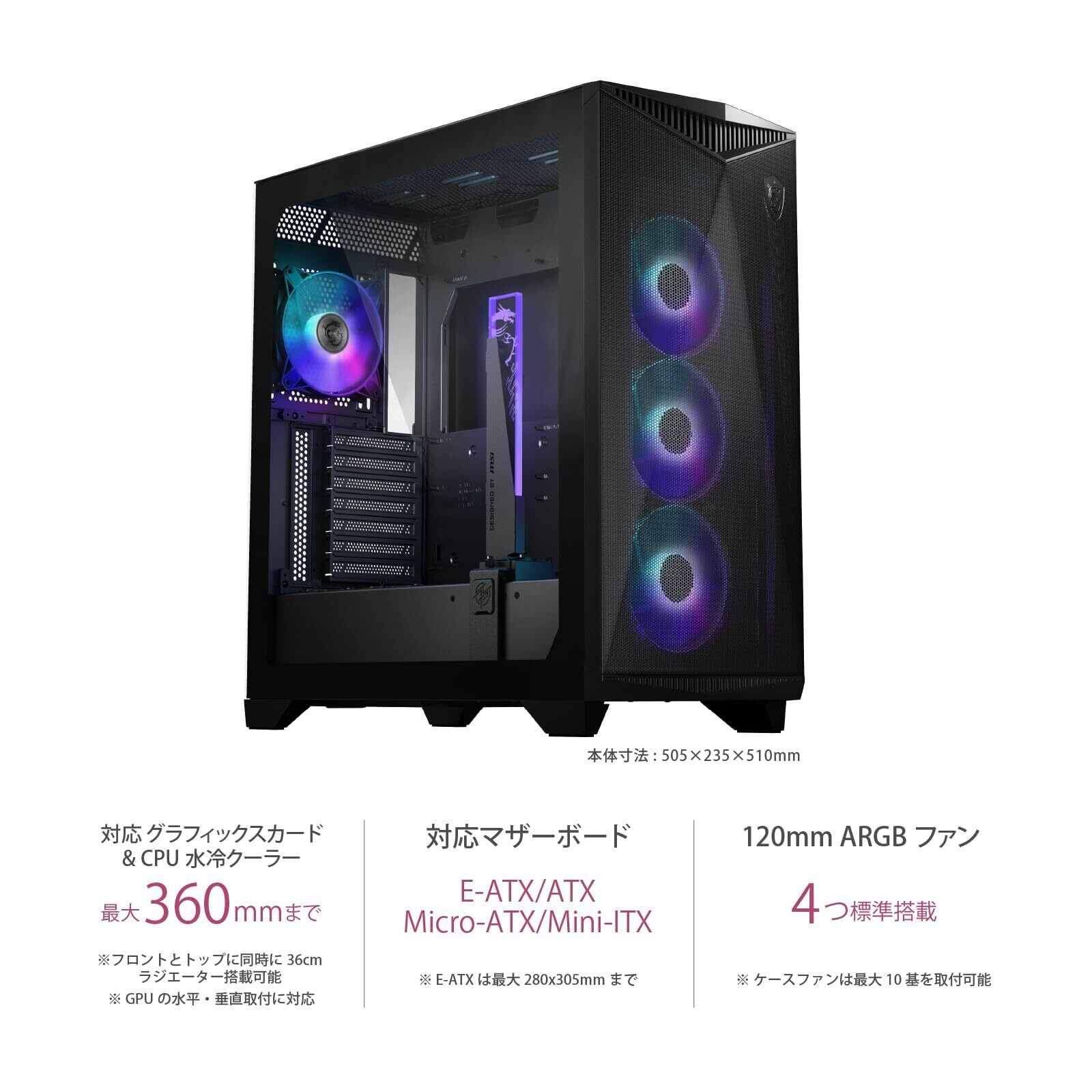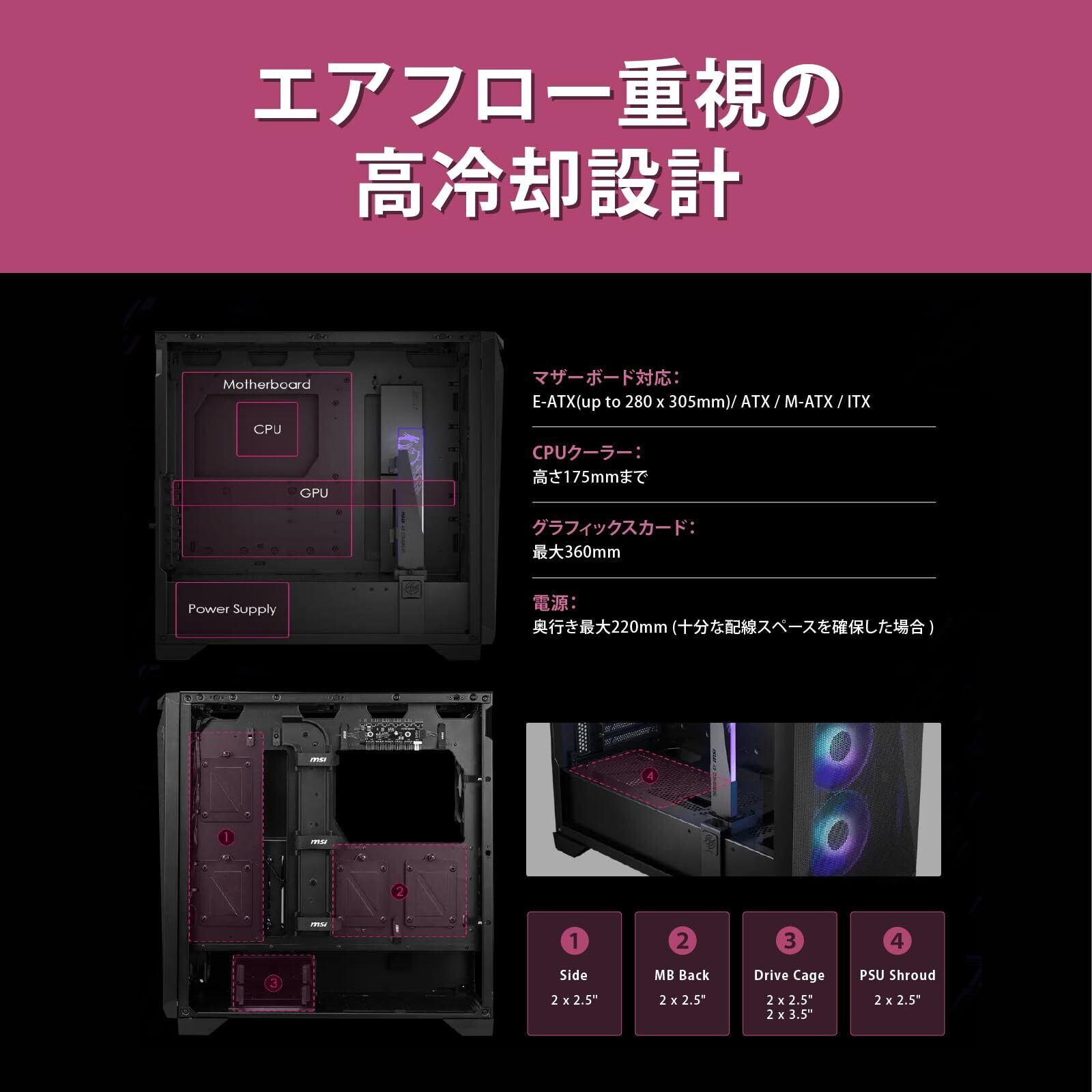MSI MPG GUNGNIR 300R AIRFLOW 高エアフロー設計採用 ARGBファン 4基搭載 EATX PCケース MPG GUNGNIR 300R AIRFLOW CS8770 ブラック
