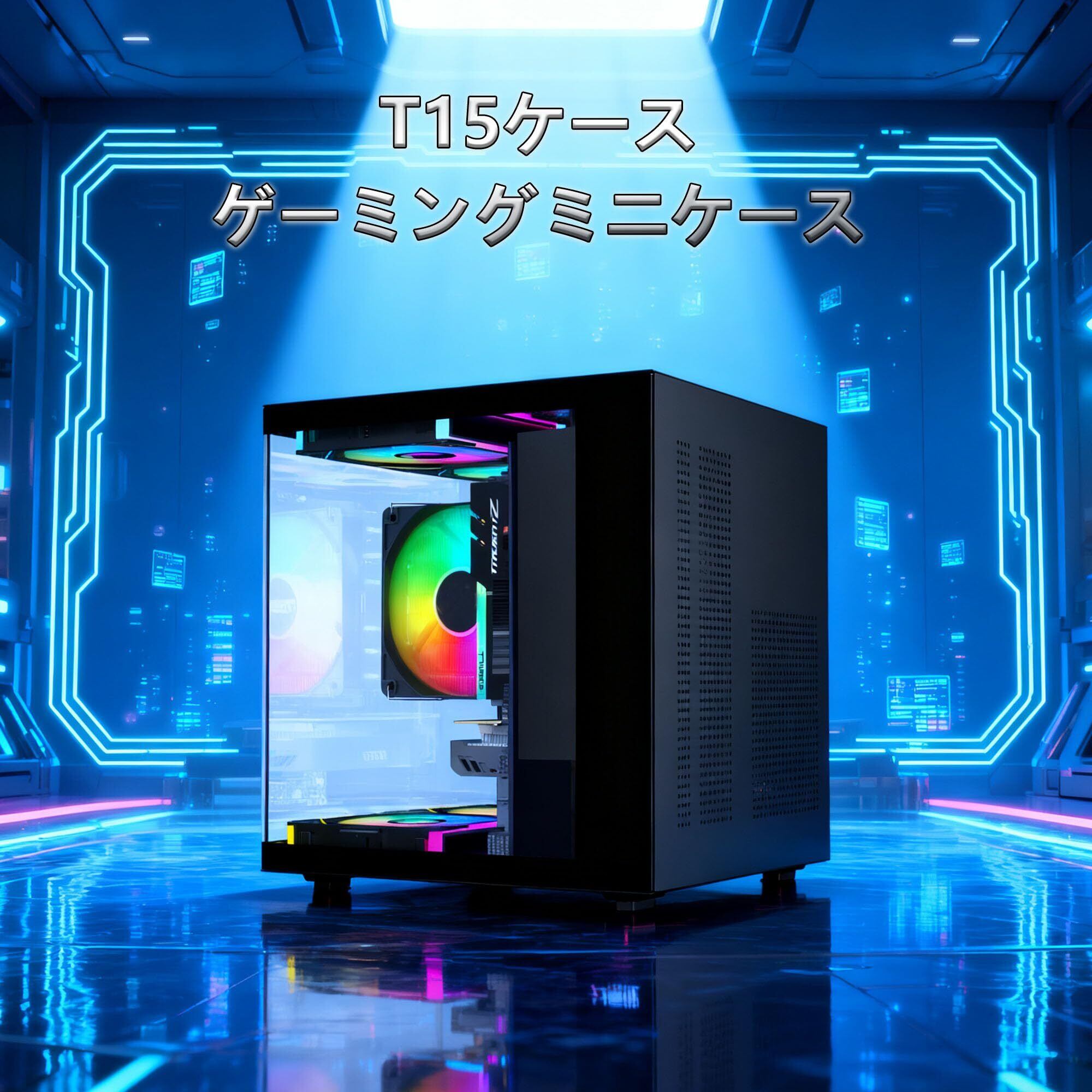 超小型 MicroATX MiniITX PCケース 強化ガラス側板 コンパクトデスクトップケース (ブラック)