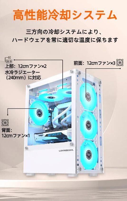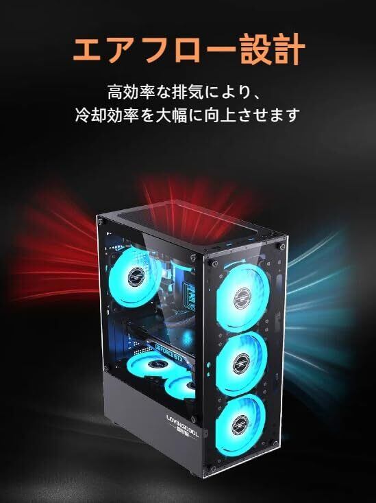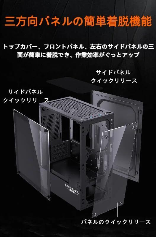 【全景強化ガラス採用、美しさと実用性を両立】本製品は側面・前面・上面の3面に強化ガラスパネルを採用。高い透明度と耐久性を兼ね備え、内部のライティングやパーツ構成をスタイリッシュに演出します。自作PCの魅力を余すところなくアピールしたい方に最適なデザインです。