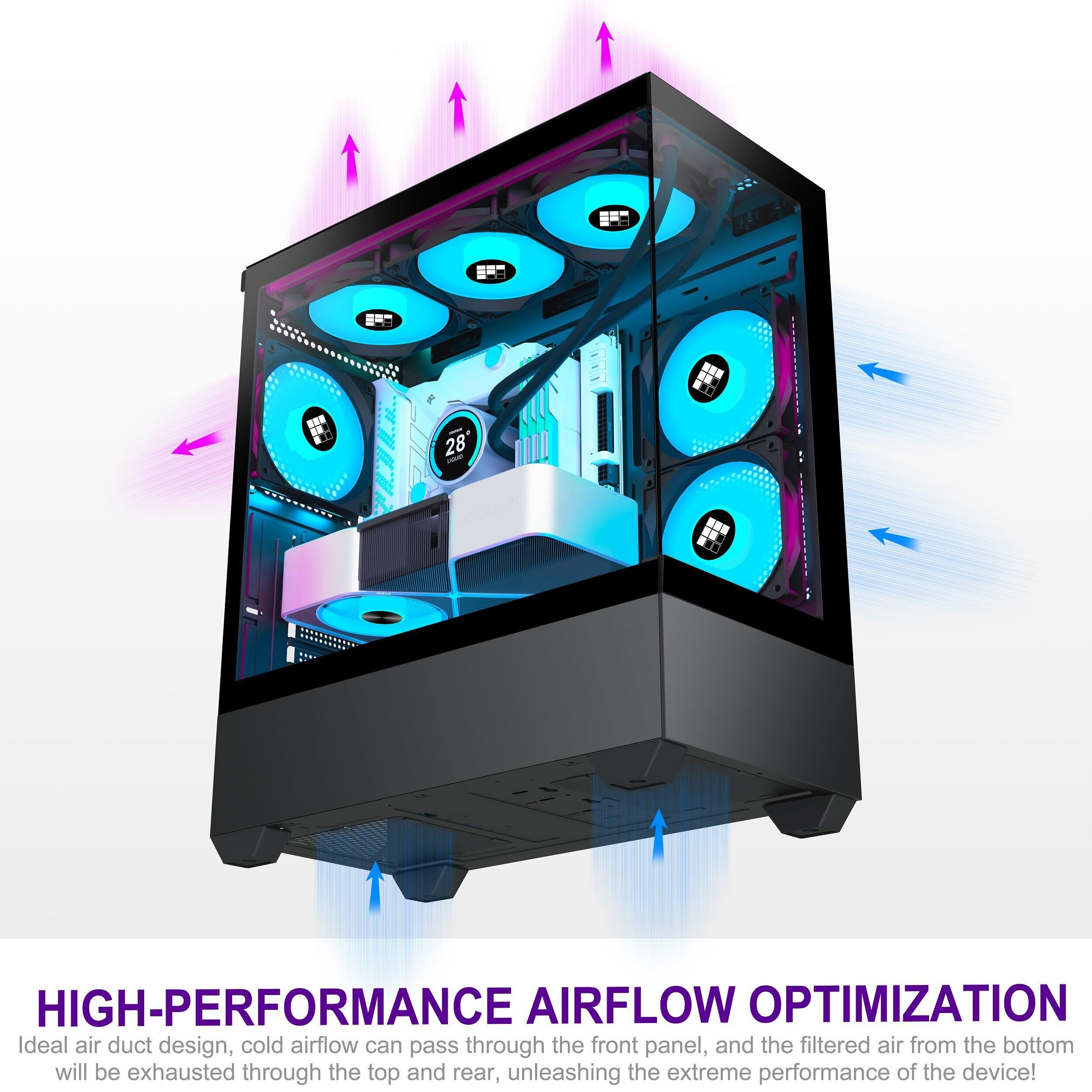 FOIFKIN PCケース - プリインストール6 PWM ARGBファン、ATXミッドタワーゲーミングケース、F1 (ブラック, F1)