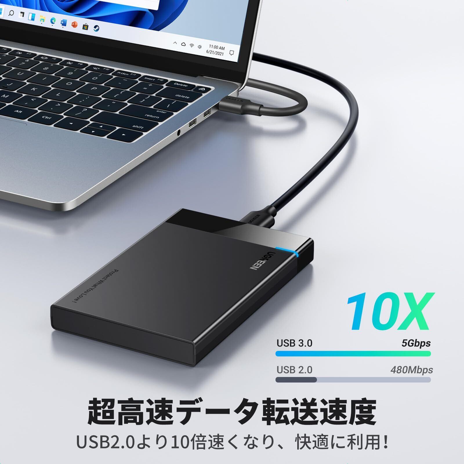 UGREEN 2.5インチ HDD ケース SSD ケース USB3.0接続 UASP対応 2.5型 SSD ケース 5Gbps高速転送速度 SATA 3.0 9.5mm/7mm対応 HDD ケース 6TB大容量対応 工具不要 ハードディスクケース ブラック 【USB A-MicroUSBケーブル付き】