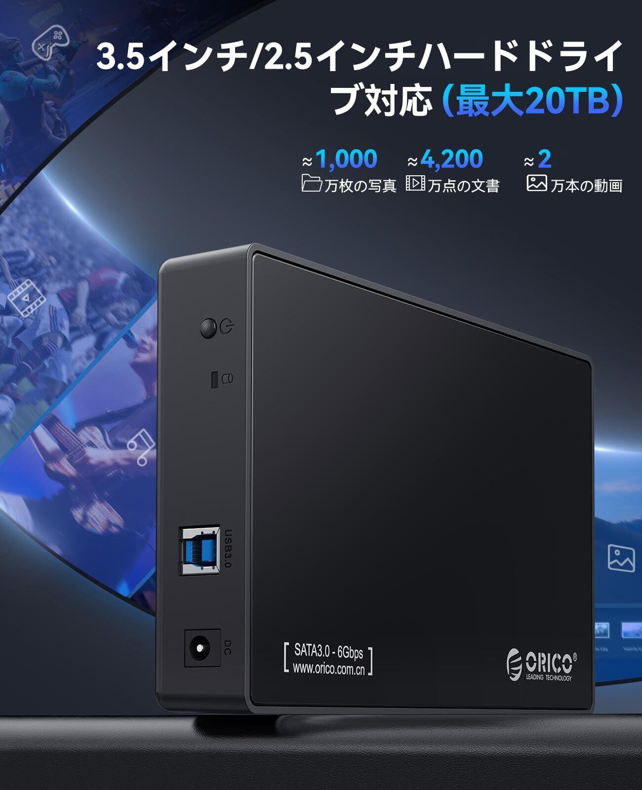 ORICO 3.5 インチ HDD ケース SATA3.0 外付けhdd ケース 2.5 / 3.5 両方対応 USB3.0 ハードディスケース UASP対応 5Gbps高速データ転送 20TBまで ツール不要 ブラック 3588US3