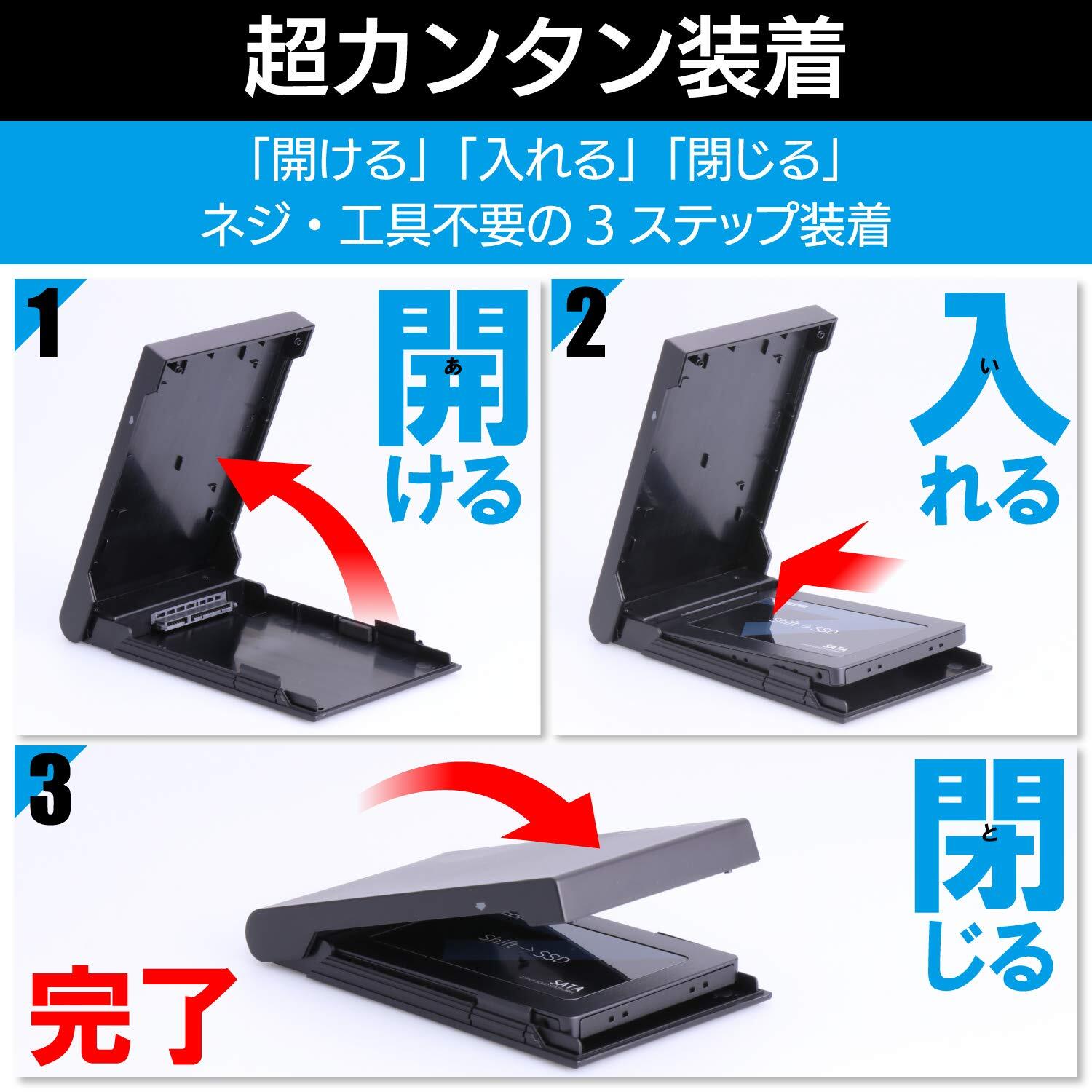 ■カバーを開けて、HDDを入れて、閉じるだけの3ステップで、素早く装着できます。ネジや工具は不要です。