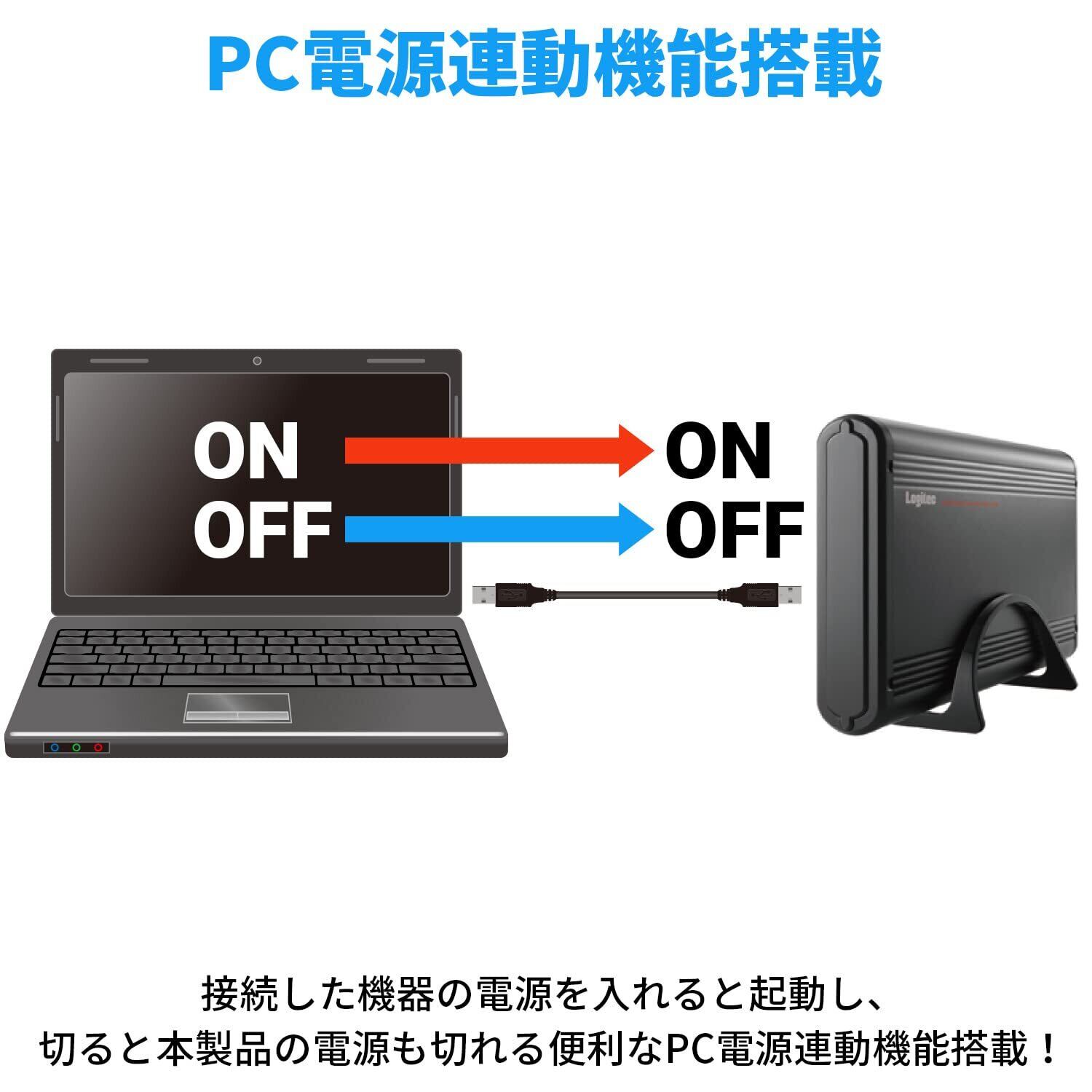 【パソコンと連動してON/OFFにできるPC電源連動機能搭載】接続した機器の電源を入れると起動し、切ると本製品の電源も切れる便利なPC電源連動機能を搭載。ACアダプタの抜き忘れによる無駄な消費電力の低減できます。