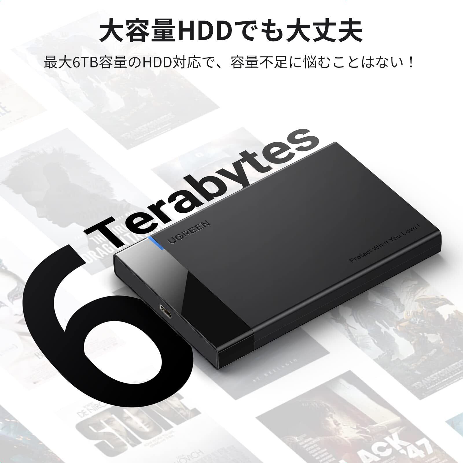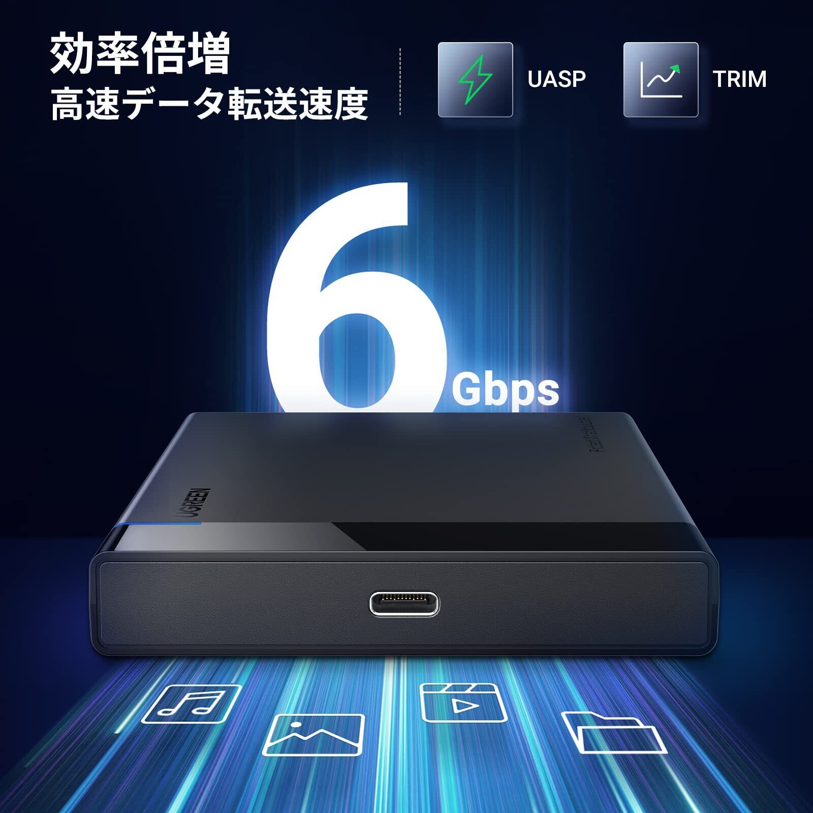 UGREEN 2.5インチ HDD ケース hdd/ssd ハードデスクケース SATA 3.0 USB3.1 Gen 2 Type-C接続規格 【USB C to USB Aケーブル付き】 UASP対応 6Gbps高速転送 6TB大容量対応 2.5型 9.5mm/7mm 外付けケース 工具不要 Mac OS/Windows//Linux PS4Pro/PS3/テレビ等に適用