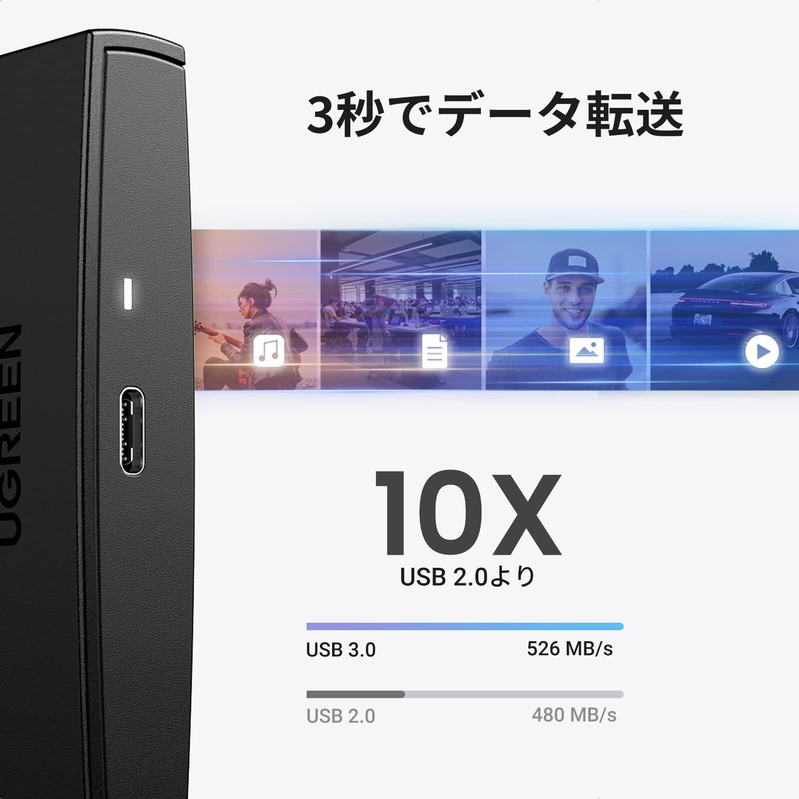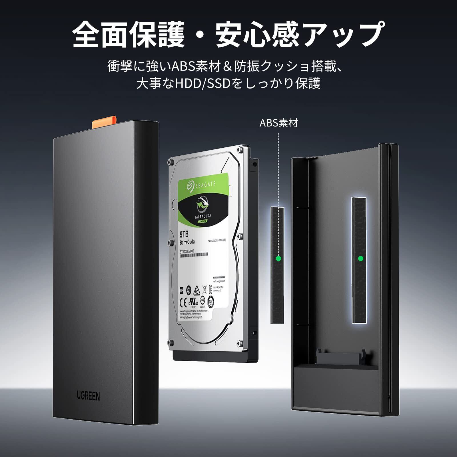 UGREEN 2.5インチ SSD HDD ケース 【USB C 3.1 Gen 2接続規格】 UASP対応 6Gbps高速転送速度 2.5型 ハードディスクケース SATA 9.5mm/7mm 6TB大容量 HDD/SSD対応 工具不要の簡単組み立て 耐衝撃ケース 【USB C-Cケーブル付属】