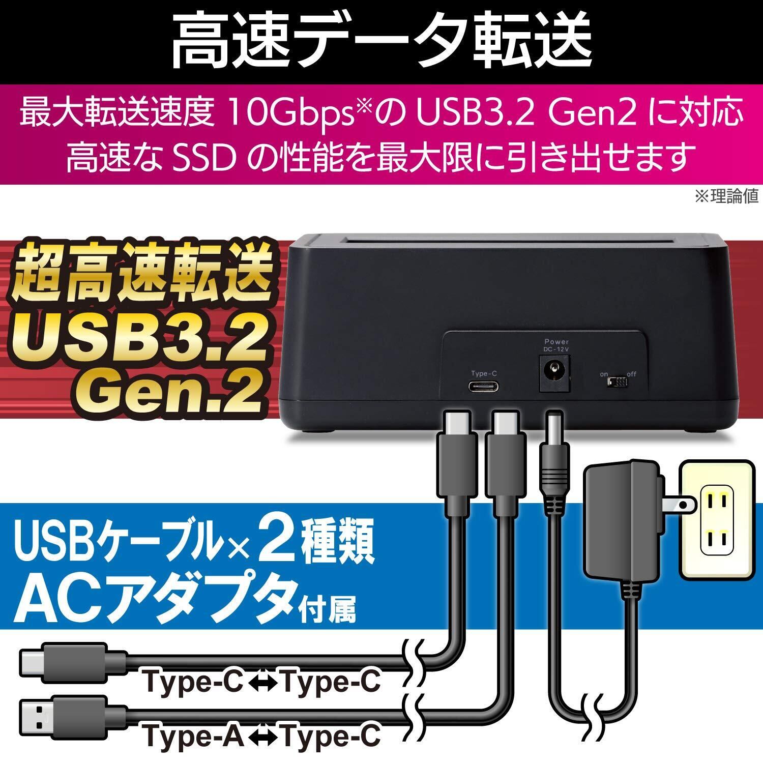 ■ 付属品:ACアダプタ1個、USB CtoAケーブル 約1m、USB CtoCケーブル 約1m、セットアップガイド1部