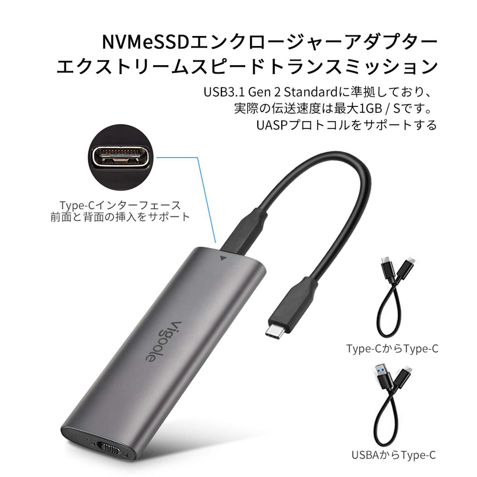 【安全性】高品質のアルミ合金採用、堅固で耐圧、放熱性も優れます。スリムなデザイン、耐久性と優れた熱放散、ポータブルで持ち運びが簡単。自動睡眠機能を持って、省エネデザイン、SSDの寿命も延長できます。注:NVMeSSDは含まれていません。タイプA-CとタイプC-C二つのケーブルは付属されております。
