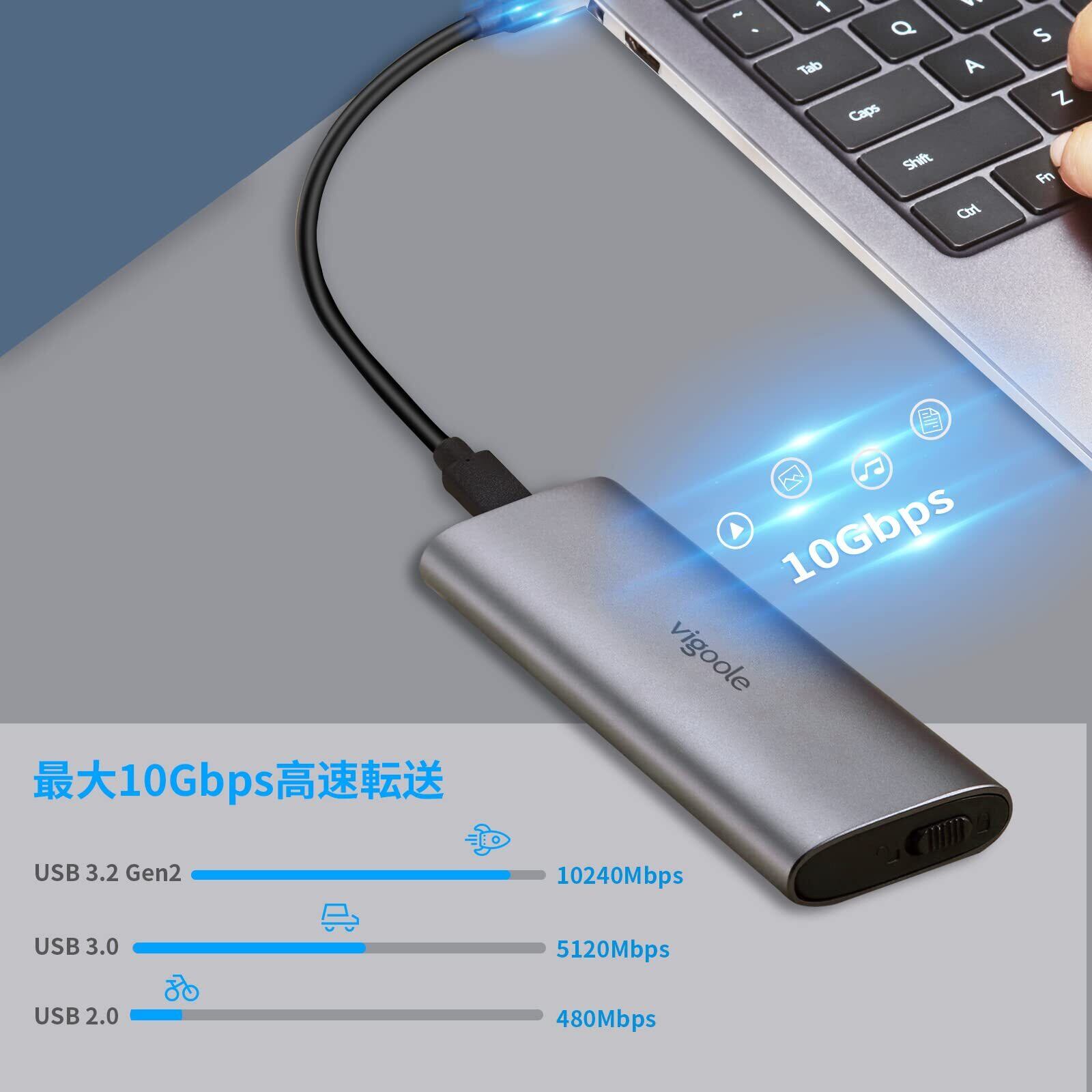 M.2 SSD ケース 工具が不要 USB-C NVME ケース(PCI-E M Key)対応 USB 3.2 Gen2 10Gbps 外付けケース UASPサポート Trim指令 2242/2260/2280 SSD対応 M.2 SSD 変換アダプタ エンクロージャ適格請求書