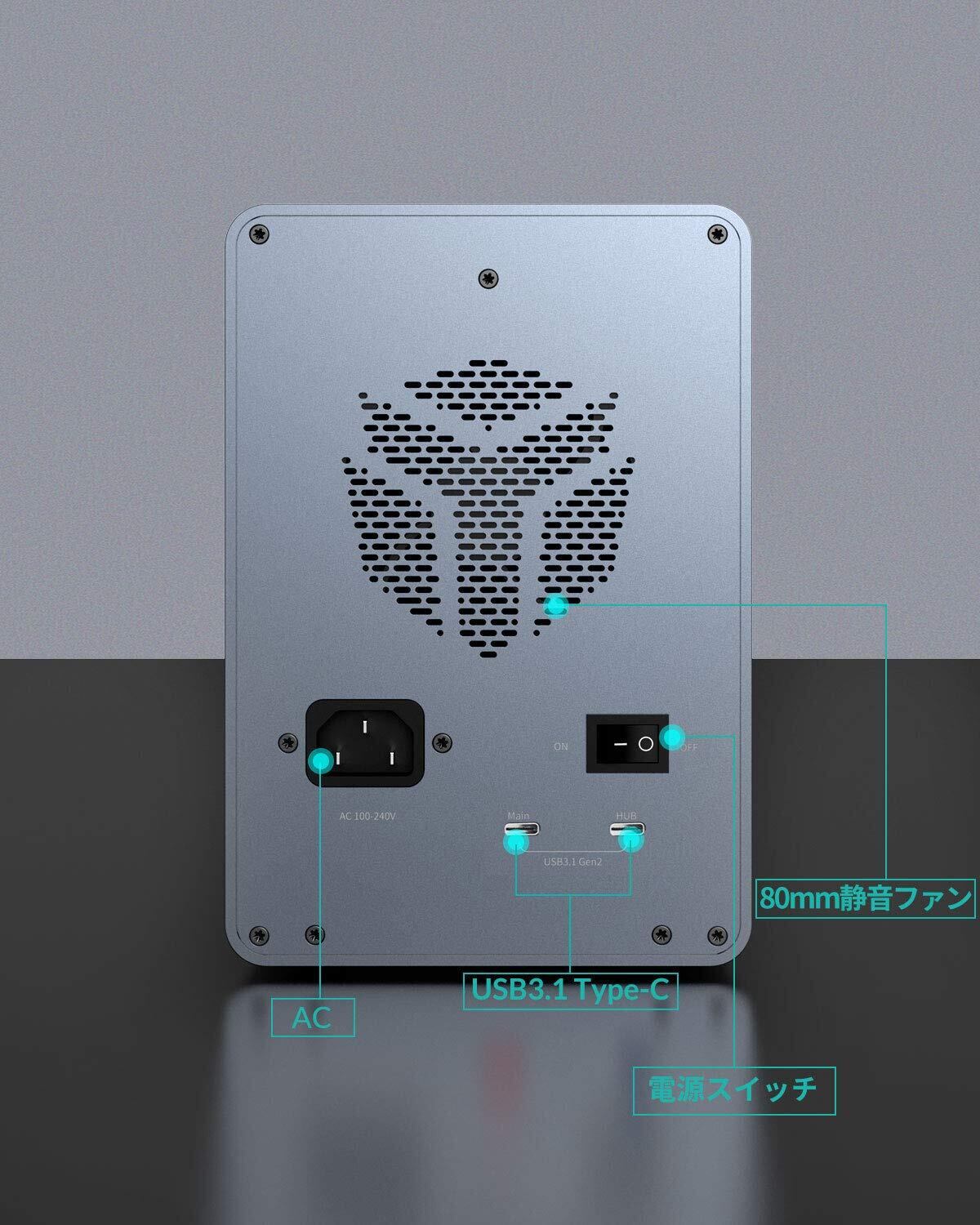 【強力な放熱対策】高品質アルミニウム合金素材採用され、前後に大面積の流星形放熱穴とφ80mmの静音冷却ファンで抜群の放熱性を実現するハードディスクケースです。強力な放熱対策により、データの安全をします。
