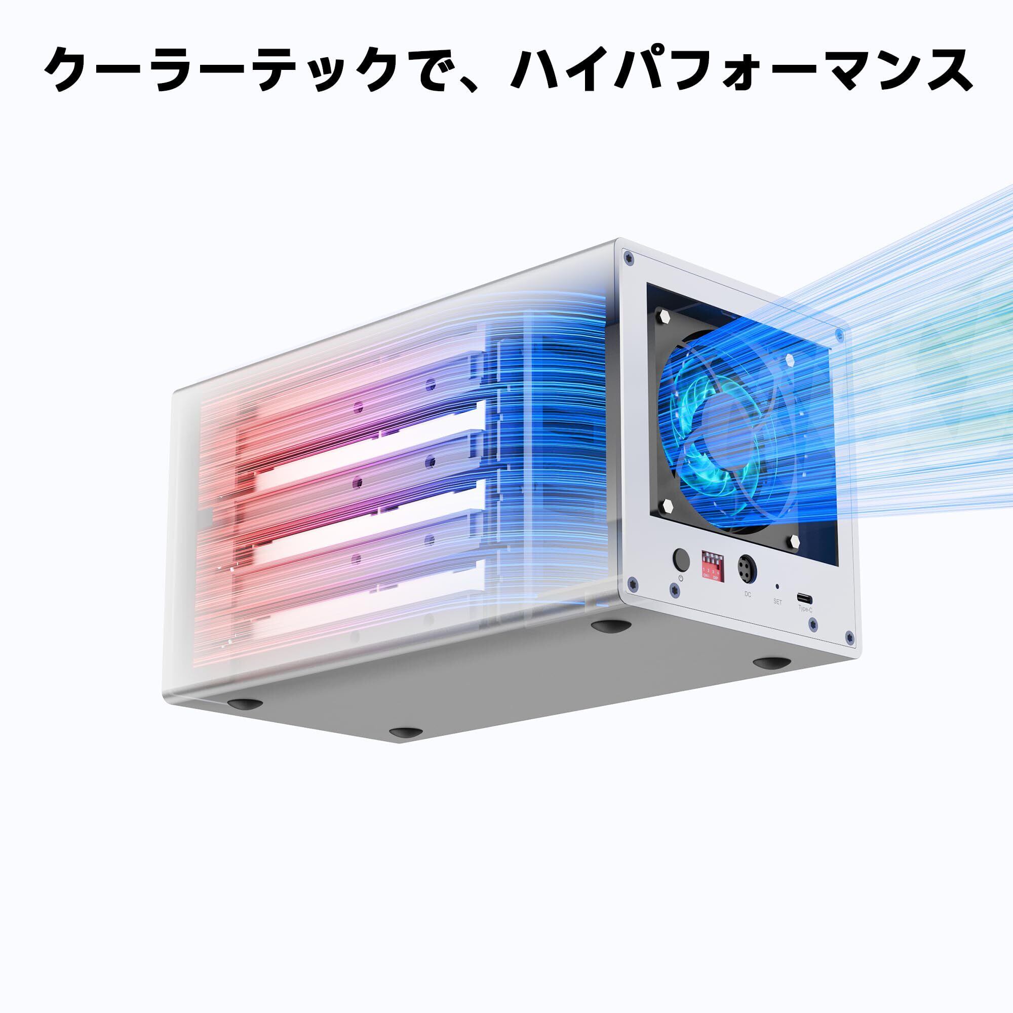 【RAID機能搭載 & 高速熱散逸 & 5Gbps 高速データ伝送】Normalモードと6種類のRAIDモードRAID0、RAID1、RAID3、RAID5、RAID10、SPAN(JBOD)対応、背面のRAIDモード切替えスイッチにて簡単に切り替えることが可能です。注:RAIDモード切り替えの場合、HDDをフォーマットする必要はあります。フォーマットする前にデータのバックアップを取ることをお勧めします。高品質アルミニウム合金の素材で作られた筐体、ハニカム型放熱穴とφ80mm静音冷却ファンで抜群の放熱性を実現する5ベイraidケースです。USB2.0の10倍以上の高速転送(最大5Gbps:理論値)を実現するUSB3.0規格に対応しており、大容量データの転送もストレスなく行えます。