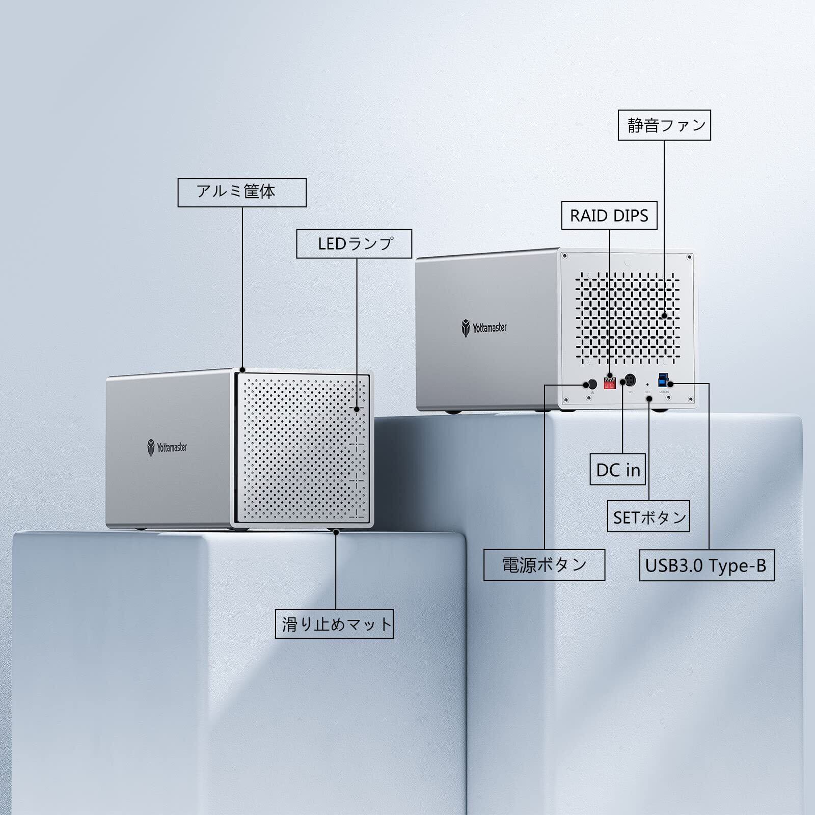 [RAID機能]Yottamaster (4Bay) HDDケース 3.5インチ USB3.0 Type-B接続 SATAⅢ RAIDケース 4台搭載可能 外付けハードディスクケース アルミ ハードドライブエンクロージャ シルバー[PS400RU3]