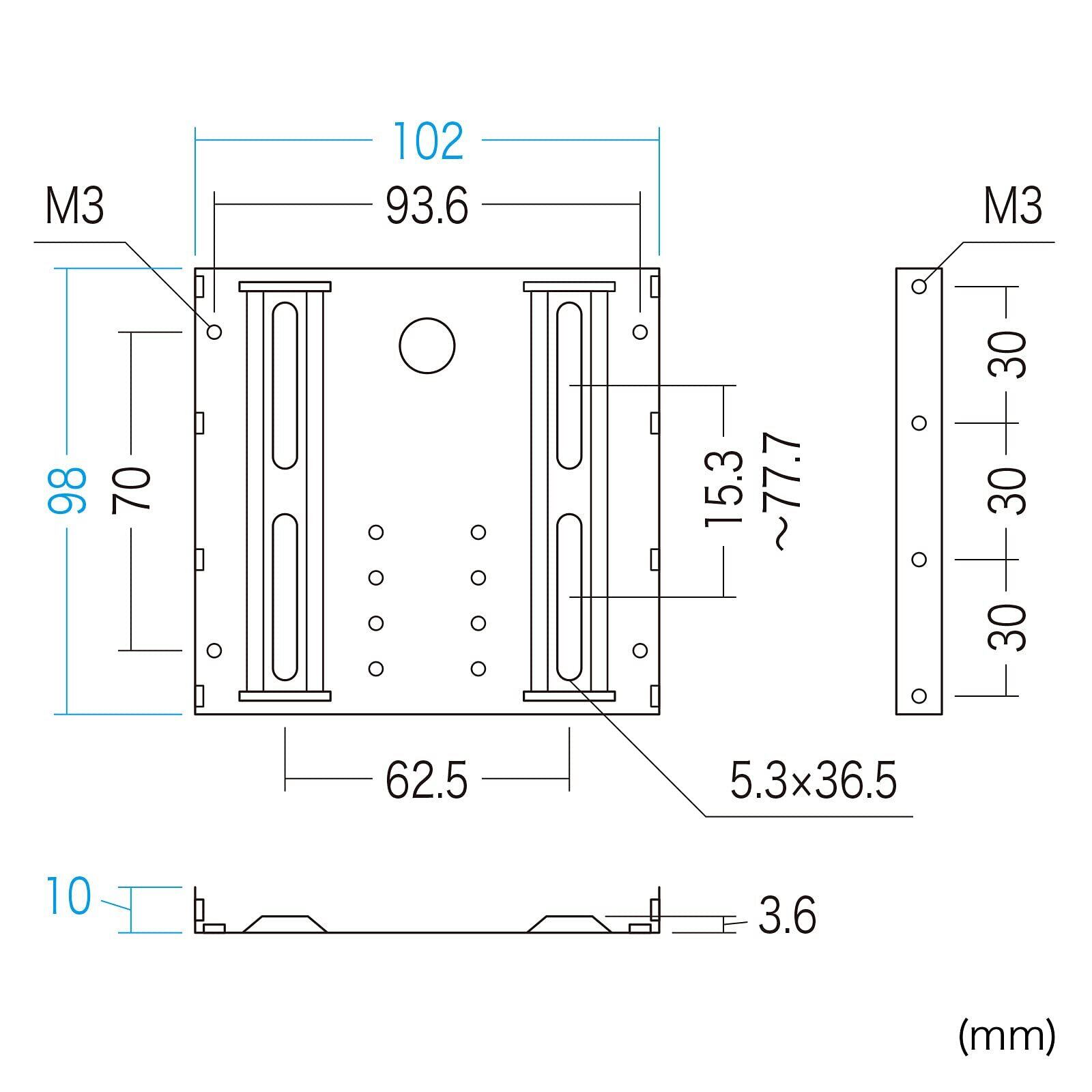 ※3.5インチハードディスク両端の穴間隔と一致する固定穴はありません。