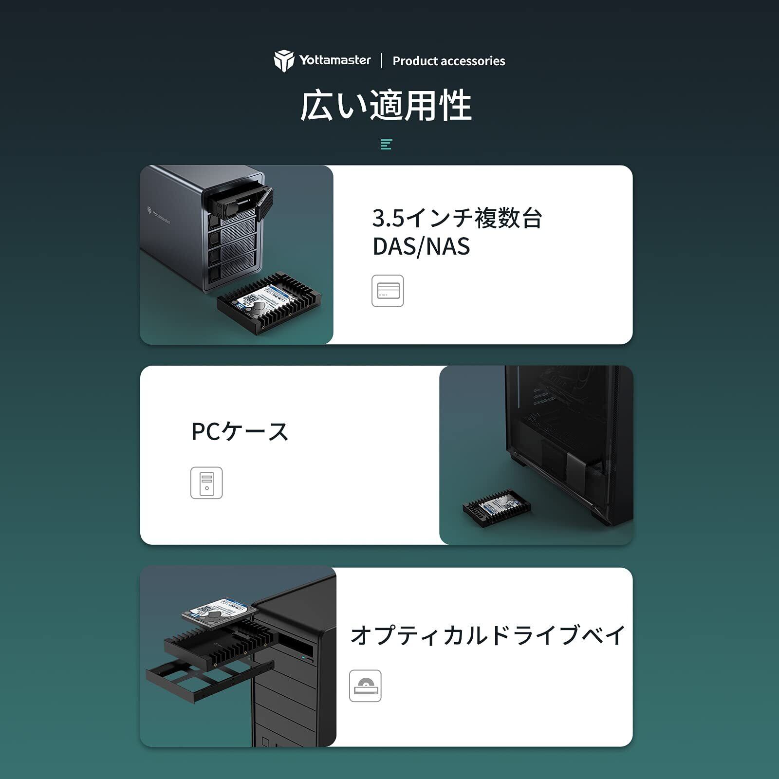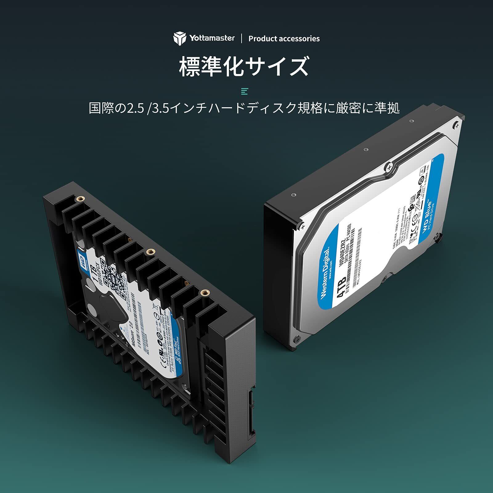 Yottamaster 2.5→3.5変換マウンタ 2.5インチ HDD/SSD→3.5インチサイズ変換ブラケット SATAインターフェース 内蔵HDDケース 鋼製ネジ付き 取り付け簡単 ブラック[P-25TS]