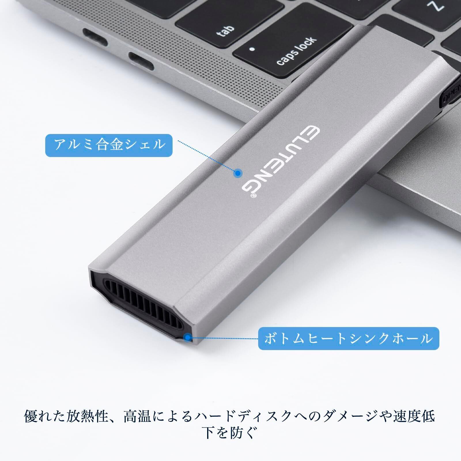 ELUTENG M.2 SSD 外付けケース NVMe/SATA 両対応 USB3.1 GEN2 10Gbps RTL9210B高性能チップ アルミ材質 高放熱 M.2 USB 変換アダプタ 2230/2242/2260/2280 M key/B+M key SSD対応 USB A/C 2本ケーブル付き M.2 SSD Case for NVMe/SATA