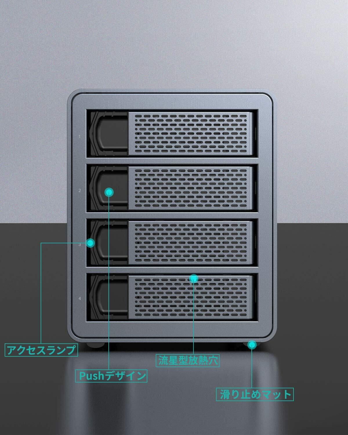Yottamaster HDDケース 3.5インチ デイジーチェーン機能搭載 USB3.1 Gen.2 Type-C接続 4Bay ハードディスクケース 18TB×4台搭載可能 中小企業向け 大容量 外付けハードドライブエンクロージャ アルミ グレー[FS4C3]