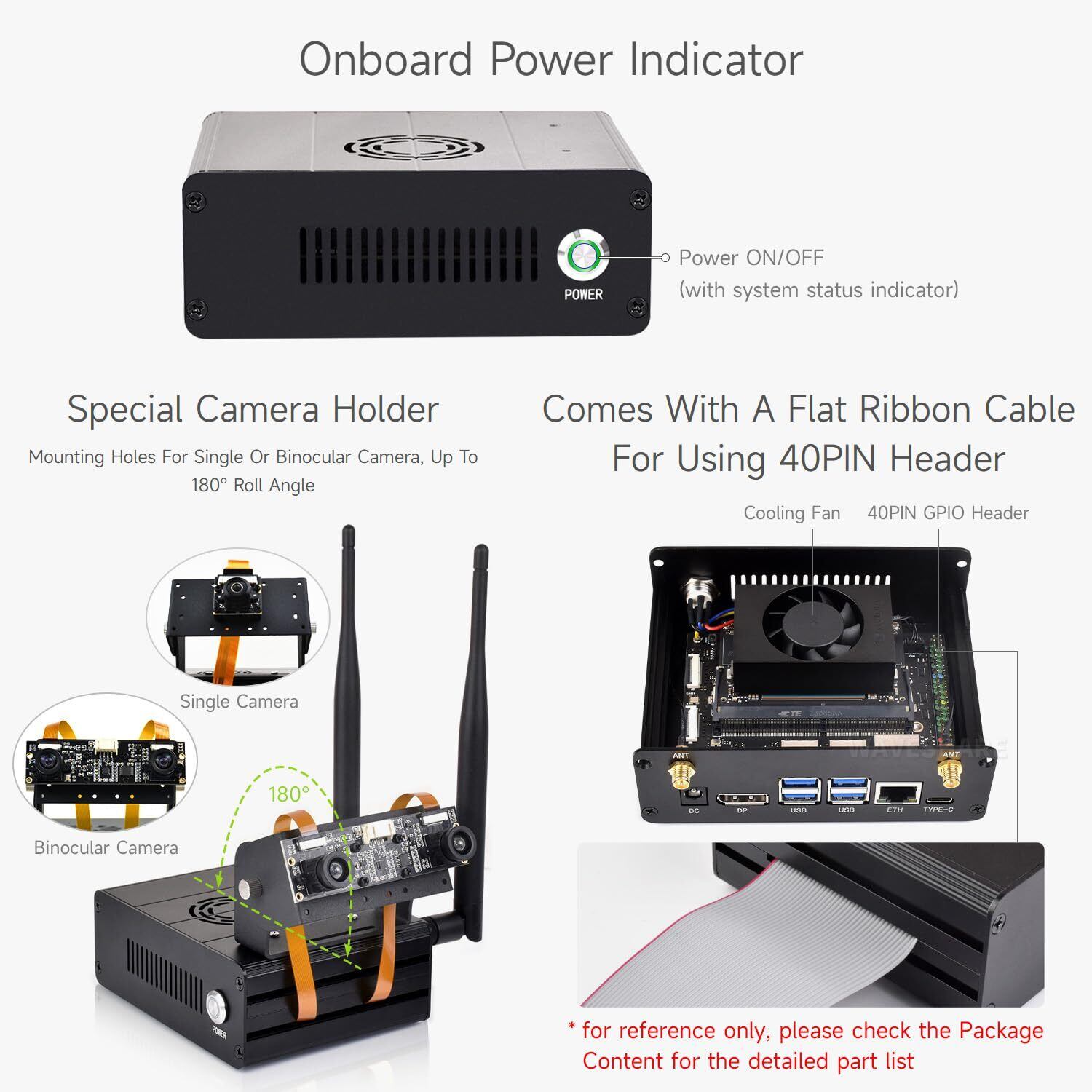 Waveshare アルミニウム合金ケース Jetson Orin用 カメラホルダー付き ミニコンピューターケース Jetson Orin Nano Super Developer Kit/Orin Nano/Jetson Orin NXキットに対応