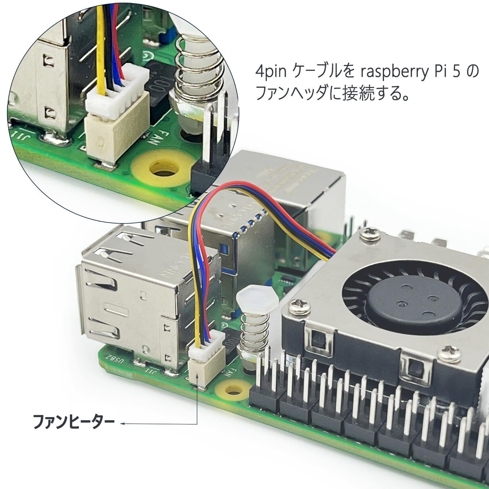 3. 入力電圧: 5V DC Raspberry Pi 5の4ピンファンヘッダーから供給される。