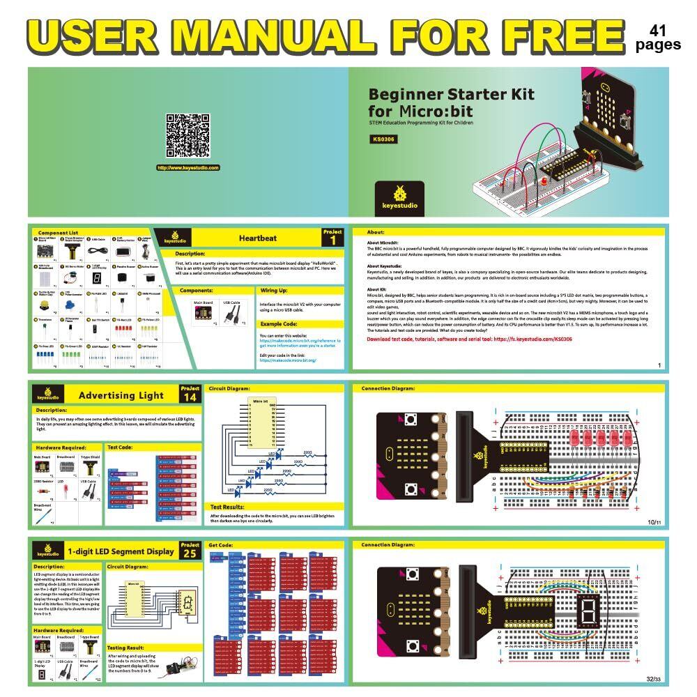 KEYESTUDIO Microbit Basic Starter Kit for BBC Micro:bit V2 アクセサリ STEMキット コーディング キッズ ビギナー向け (Micro:bit V2付属)