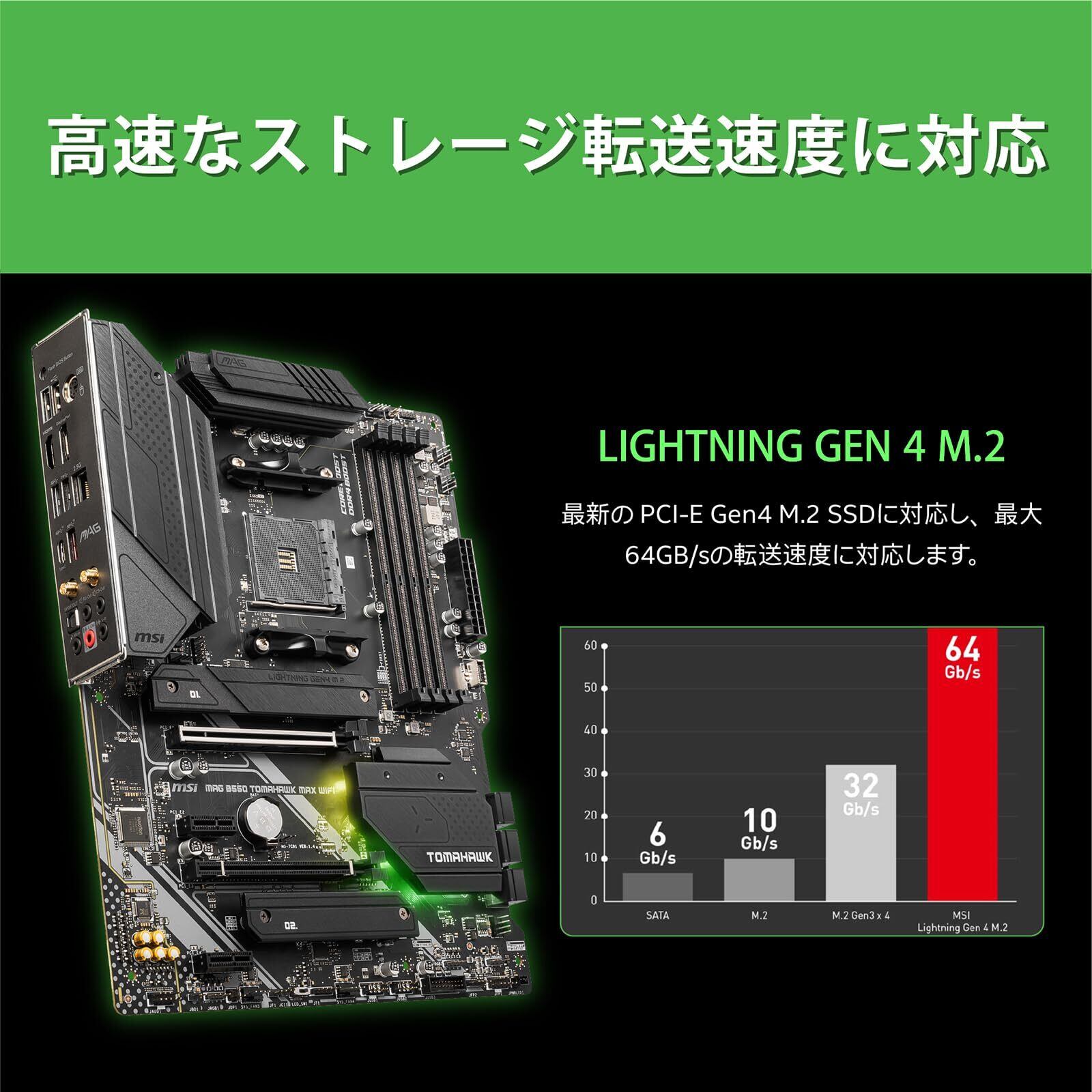MSI マザーボード MAG B550 TOMAHAWK MAX WIFI [AMD B550] ATX・2024年発売【組み立て簡単!IOパネル取り付け済み・Wi-Fi 6E通信対応】 Ryzen 5000対応 MB6469