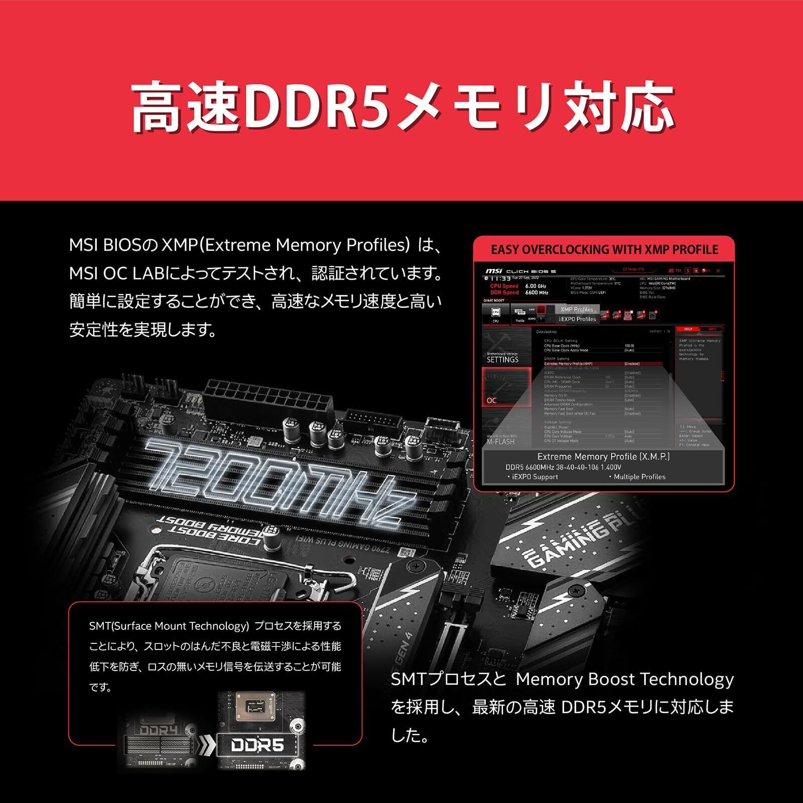 ●対応メモリ:DDR5 4800~7200+ XMP3.0対応