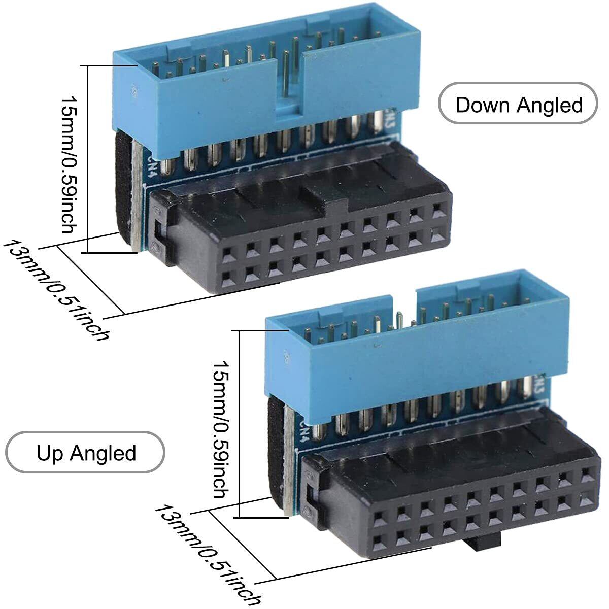 USB 3.0 20ピンオス - メス延長アダプター上下向き90度マザーボードメインボード用、ATX 19ピンコネクタ- 19ピン電源アダプタ 方向変換L型、2本セット