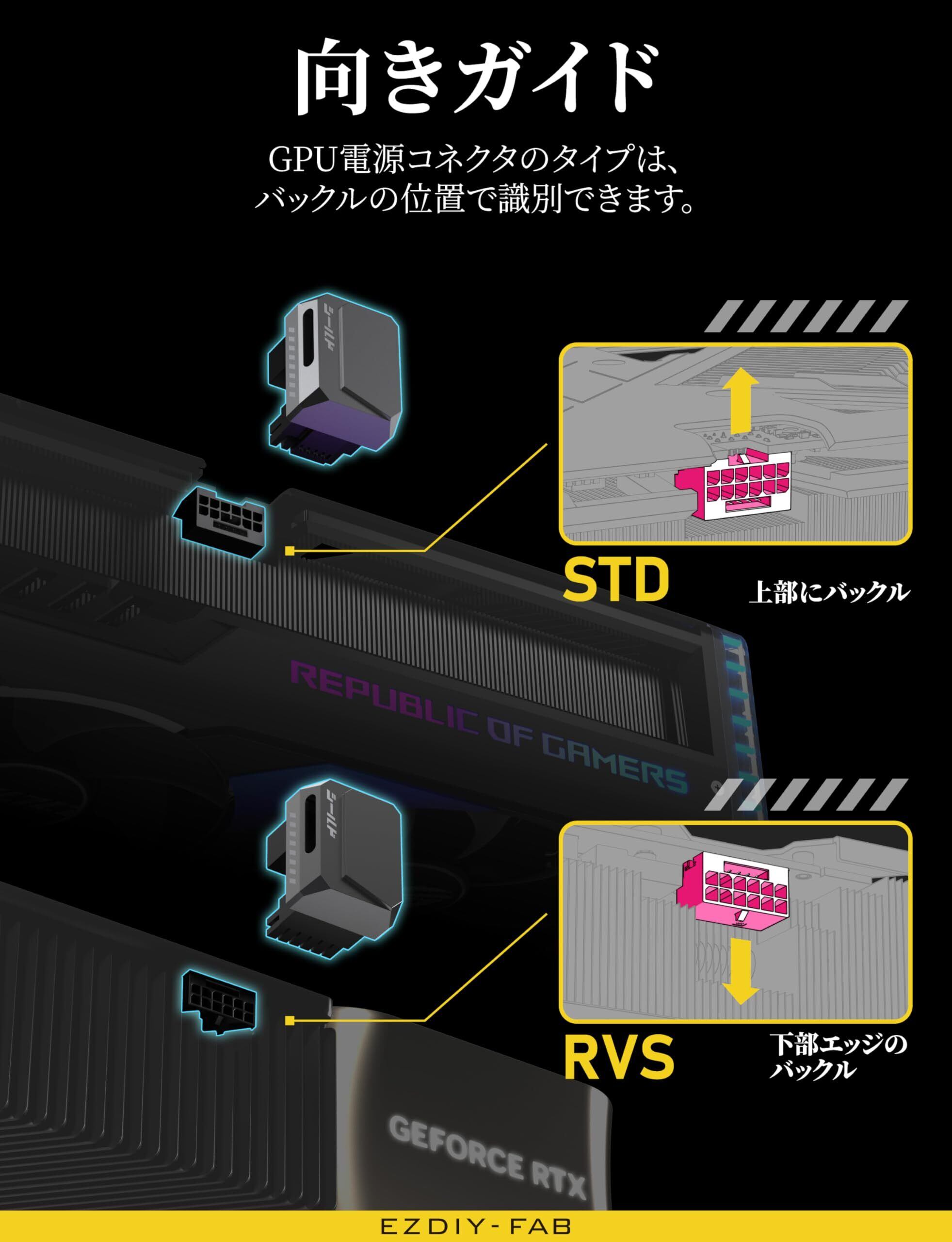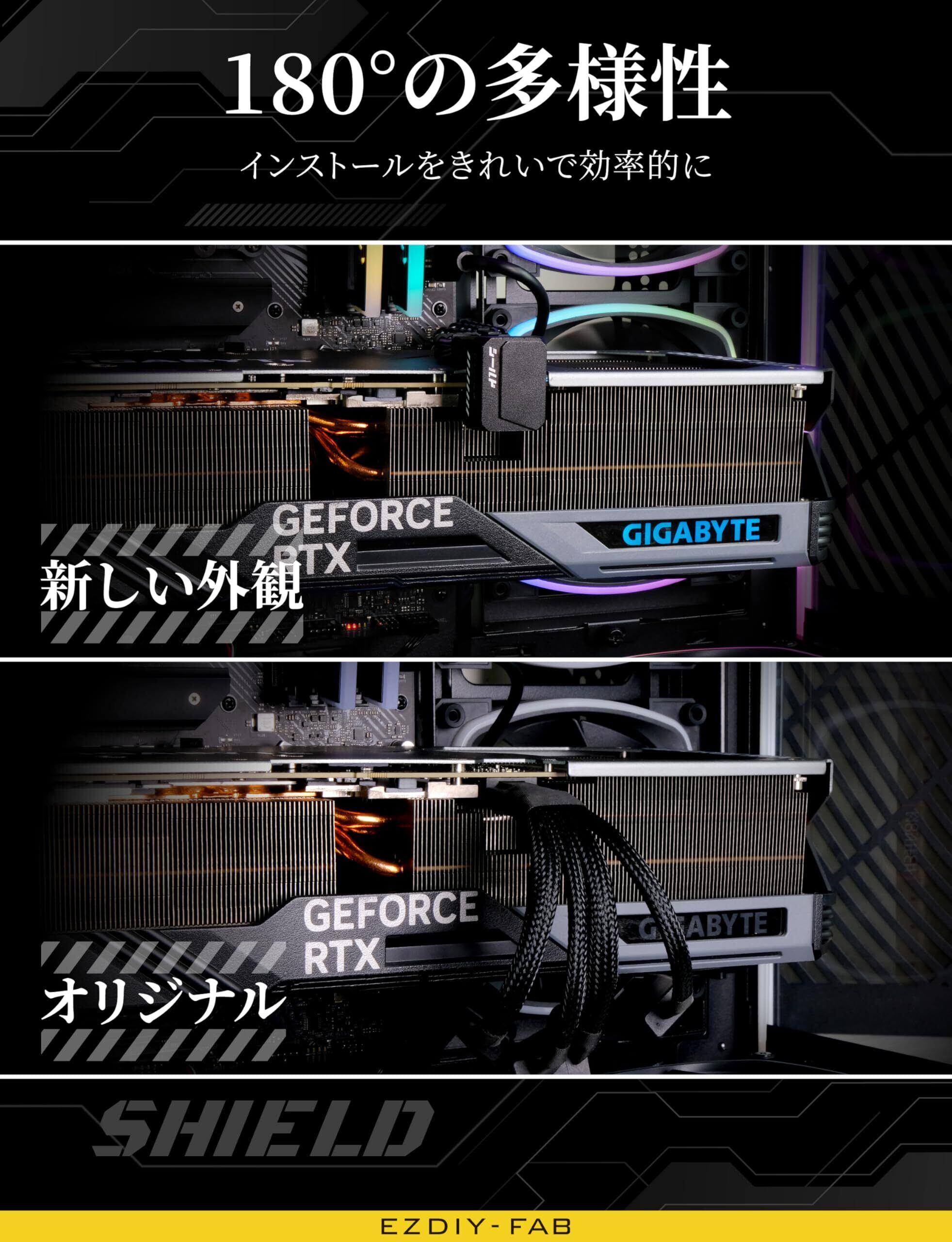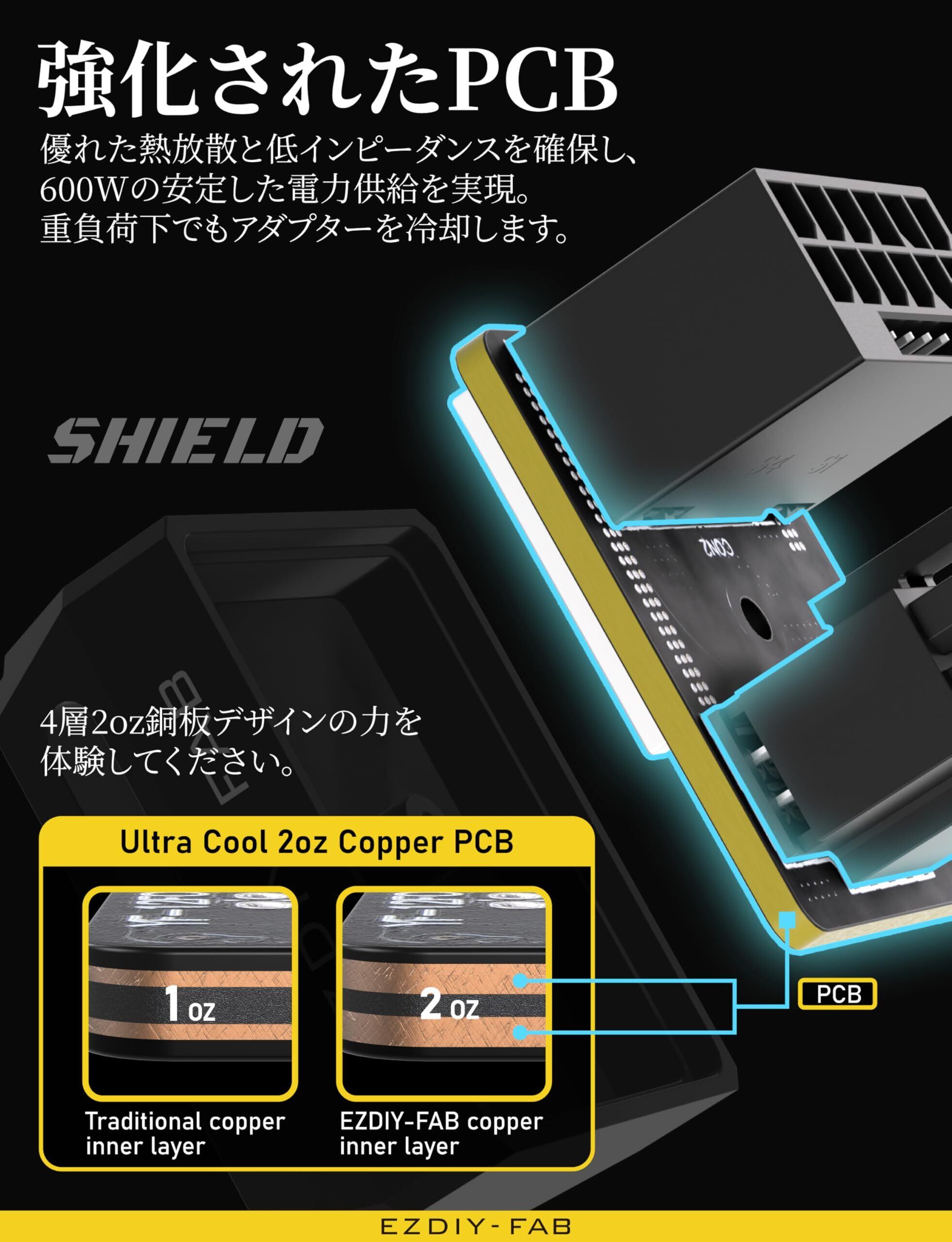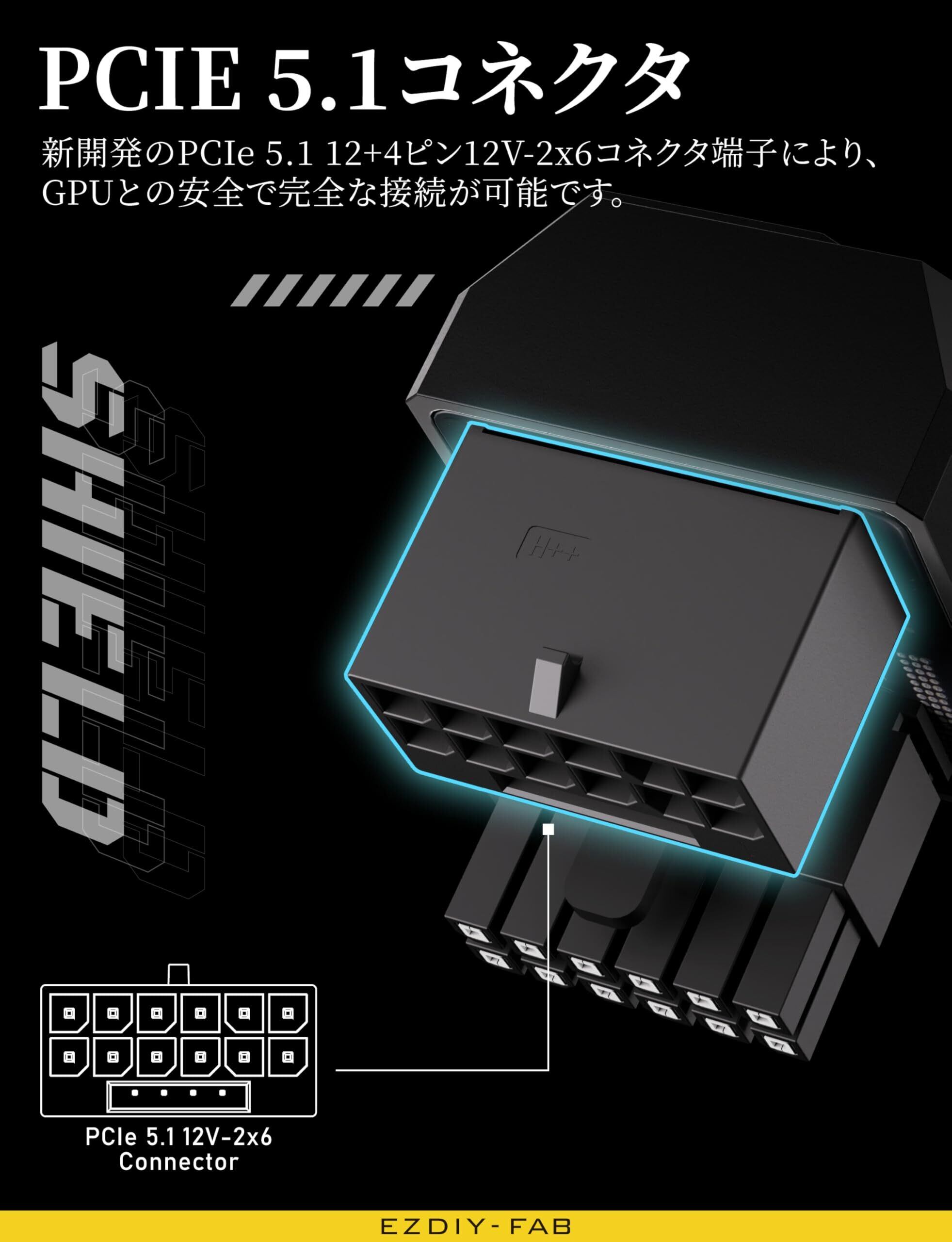 EZDIY-FAB シールド シリーズ PCIe 5.1アダプター 12VHPWR 12+4ピン 600W 180度直角アダプター GPU電源アダプター 12V-2x6 GPU対応 グラフィックボード用RTX3090Ti,4070Ti,4080,4090に対応 標準タイプ 黒 - 1パック