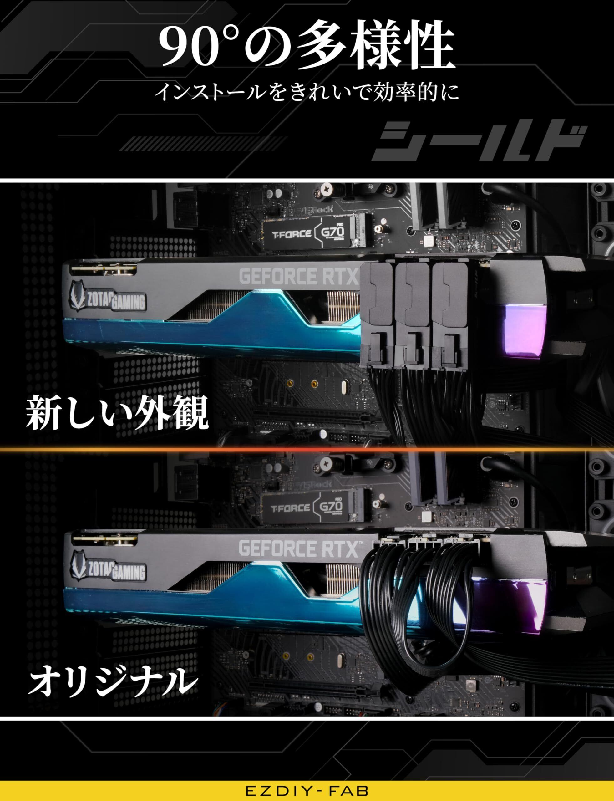 EZDIY-FAB シールドシリーズ 8ピン 変換 PCIe GPU 電源アダプター、PCI Express用 電源変換アダプタ 8ピン90度角度アダプター、グラフィックボード用 アルミニウムデザイン リバースタイプ 黒 - 1パック