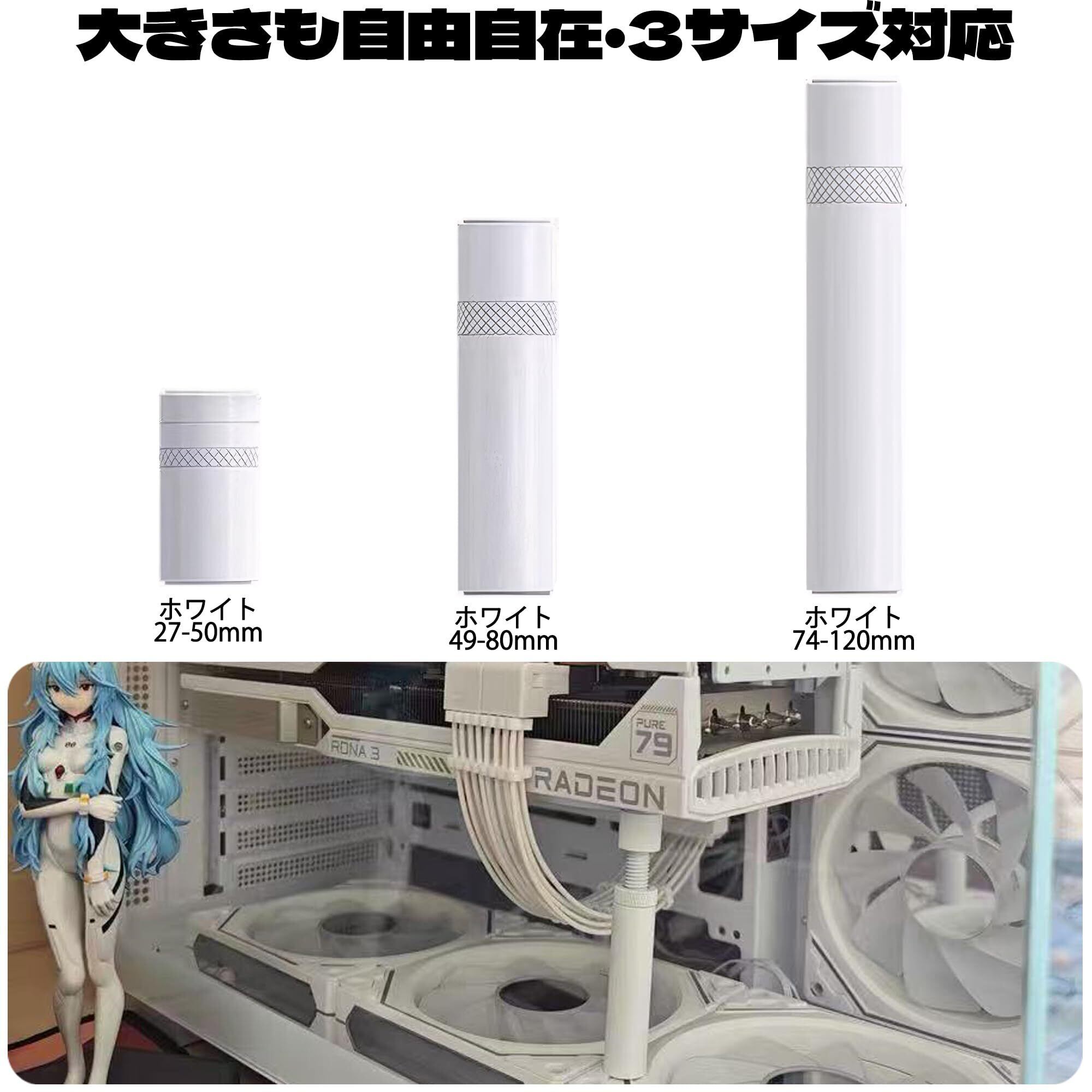 GPUサポート グラボ ステー 白 グラフィックカードサポート 調整可能 ロングスタイル グラボ 支え サポートステイ ビデオカードたるみ防止ブラケット GPUスタンド 短い 長い (ホワイト,74-120mm)