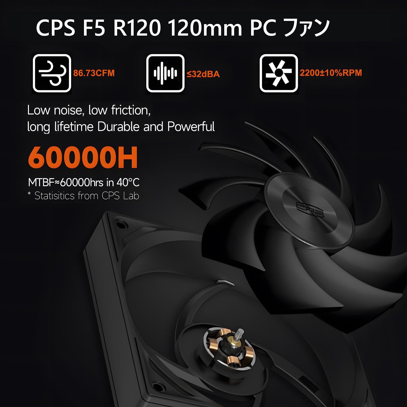 【超高性能FDBファン】RZ400 V2 CPU Cooler はF5 R120 120mm FDB の高性能ファンを組み合わせており、質感が高級で美しく、超大型風量86.73 CFM、超高速回転速度2200±10%RPMで、超長時間の作業とノンストップゲームの中で迅速にCUPの放熱・冷却、効率的なファン作業を行い、パソコンとゲーム機器を保護します。冷却ファンには緩衝ゴムパッドが搭載されており、高速走行時にも騒音を効果的に低減し、性能と騒音の完璧なバランスを実現することができる.