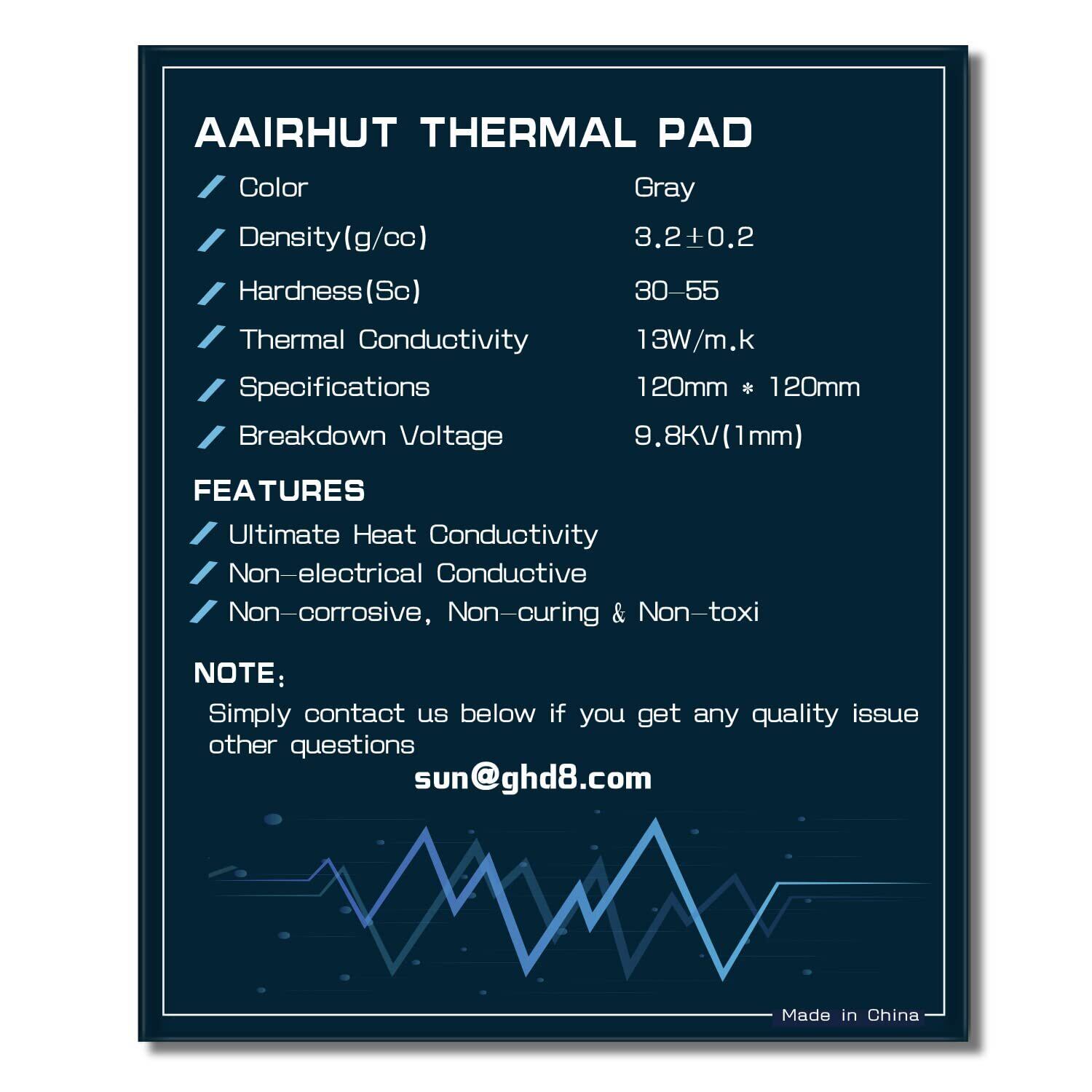 Aairhutシリコンパッド13 W/mK、120 x 120 x 2 mm熱伝導パッド放熱パッドGPU CPU非導電耐熱限界オデッセイカバー、二重自己粘膜付き、PCノートパソコン放熱器/GPS/CPU/LED