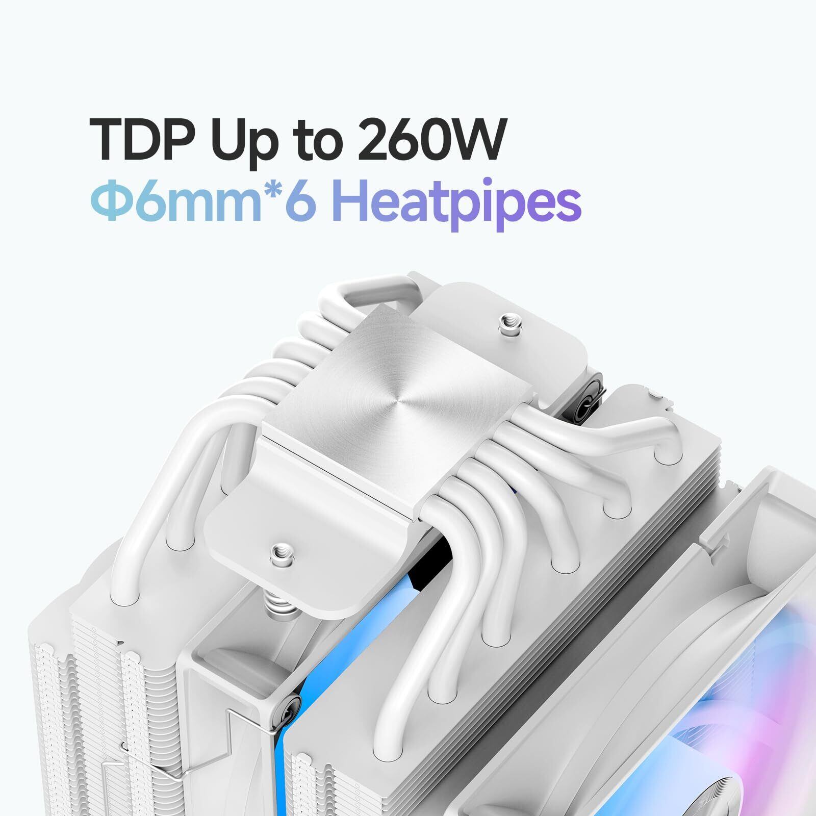 手間なくクーラーの性能を引き出す: 冷却クーラー高負荷を容易に処理でき、6mm径ヒートパイプを6本搭載するクーラーは最大260Wの熱放散をサポートします。これにより、ゲームやクリエイティブな作業中でも安定した動作を確保し、CPUクーラーが効率的に性能を引き出します