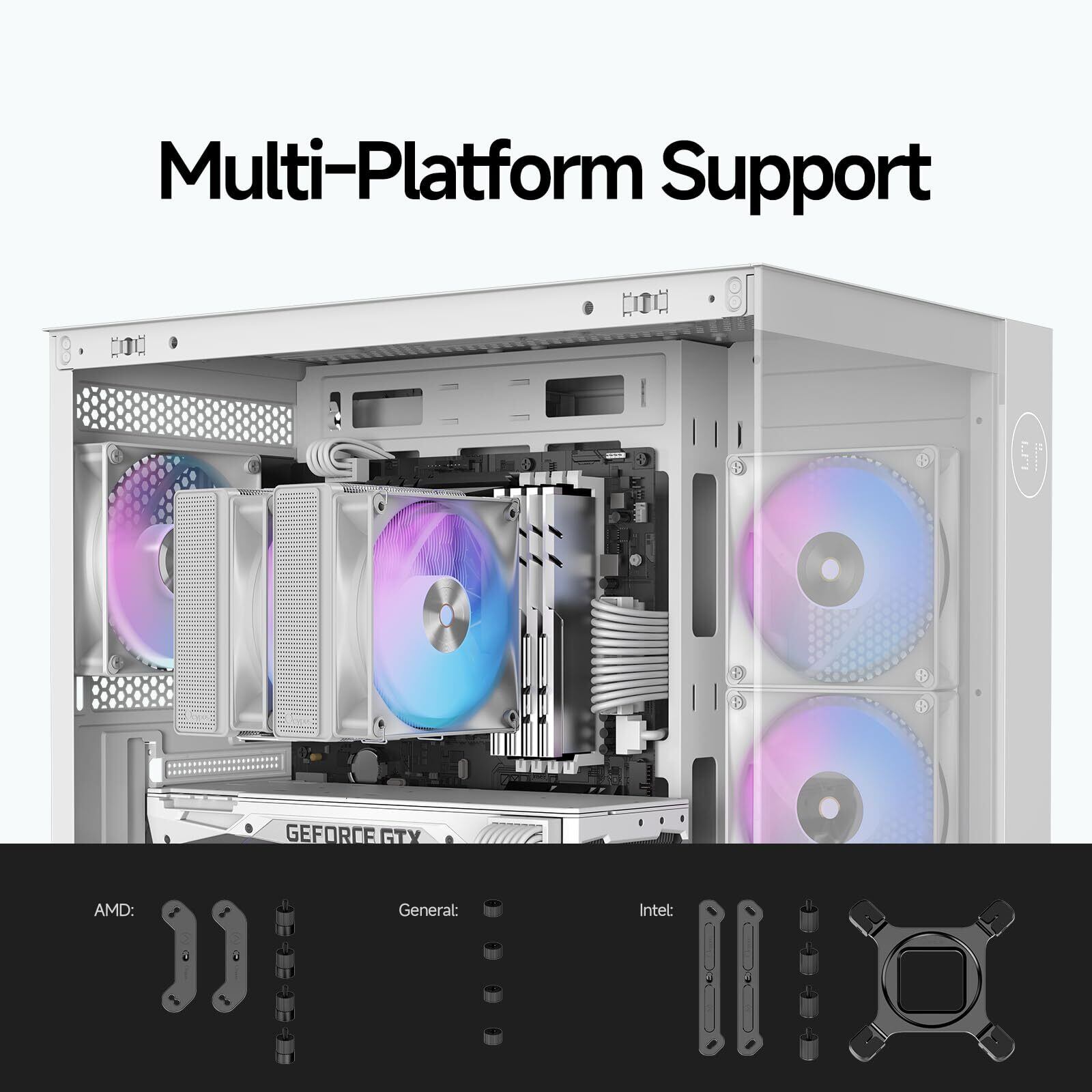 クーラーの取り付けが簡単で操作がスムーズ: 全金属製の取り付けハードウェアが付属しており、IntelおよびAMDの主流プラットフォームの両方に対応した取り付けサポートを提供します