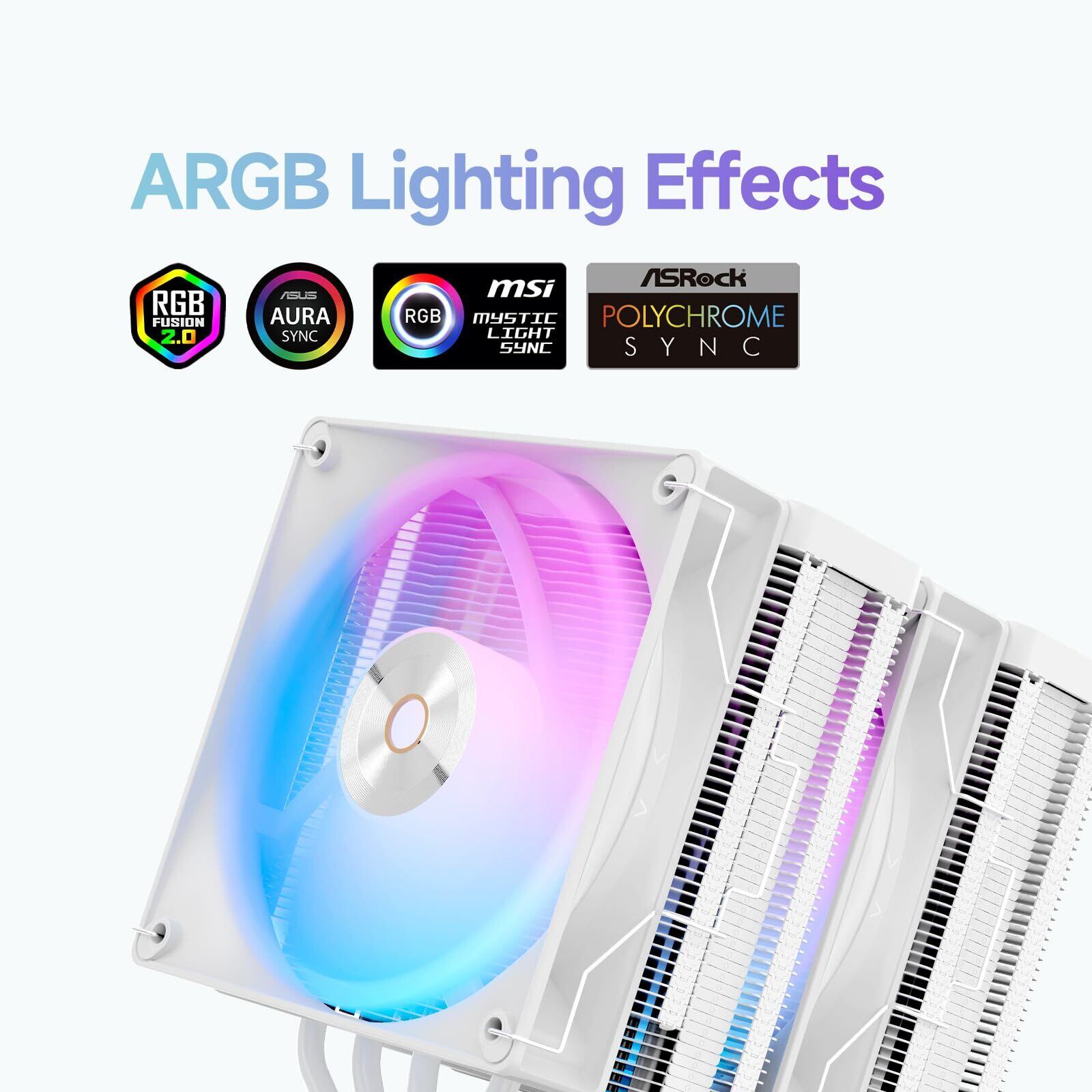 Delta A62 ARGB CPU空冷クーラー(ARGB機能搭載)、120mm油圧ベアリング静音PWMファン、6本の銅製ヒートパイプ、AMD AM4/AM5、Intel LGA 115X/1200/1700/1851対応コンピュータCPU冷却ファン