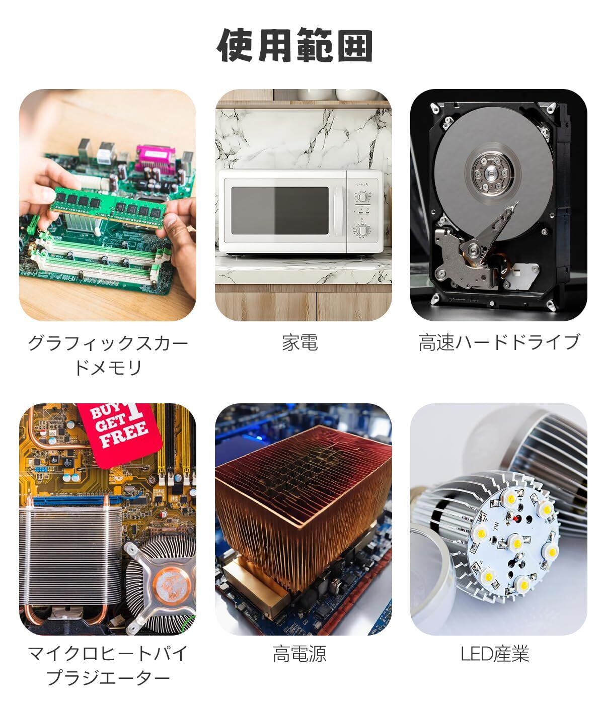 【安全設計サーマルパッド】本製品耐摩耗性、帯電防止、難燃性、緩衝性、無毒、無臭、無腐食、無刺激、金属材料へのダメージなし。絶縁性能(耐圧3kV)と吸音効果を併せ持ち、精密機器の静音冷却を実現。金属接触部の酸化防止に効果的です。パッドは、粘度、シンプルで便利なアプリケーション、安定した熱伝導、断熱性、柔らかさと柔軟性を備えています